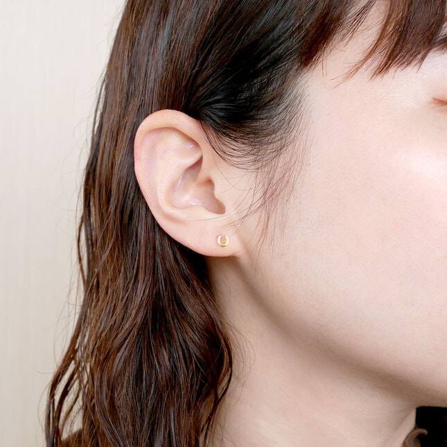 ふっくらと丸いシルエットの馬蹄が可愛らしいピアス。