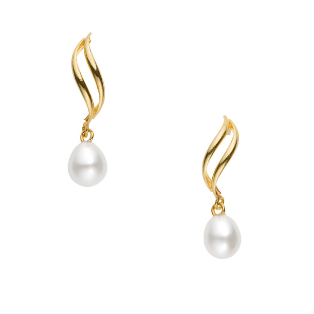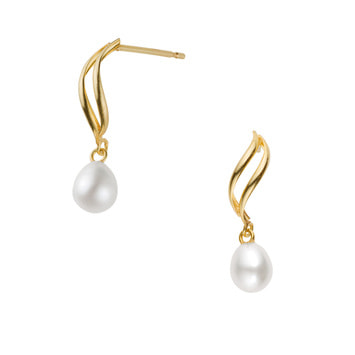 2本の細いラインの先端にセッティングされたパールが可憐に揺れるピアス。