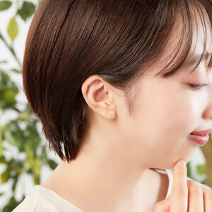 光りすぎない表情のピアスはデイリーに使いやすいアイテムです。