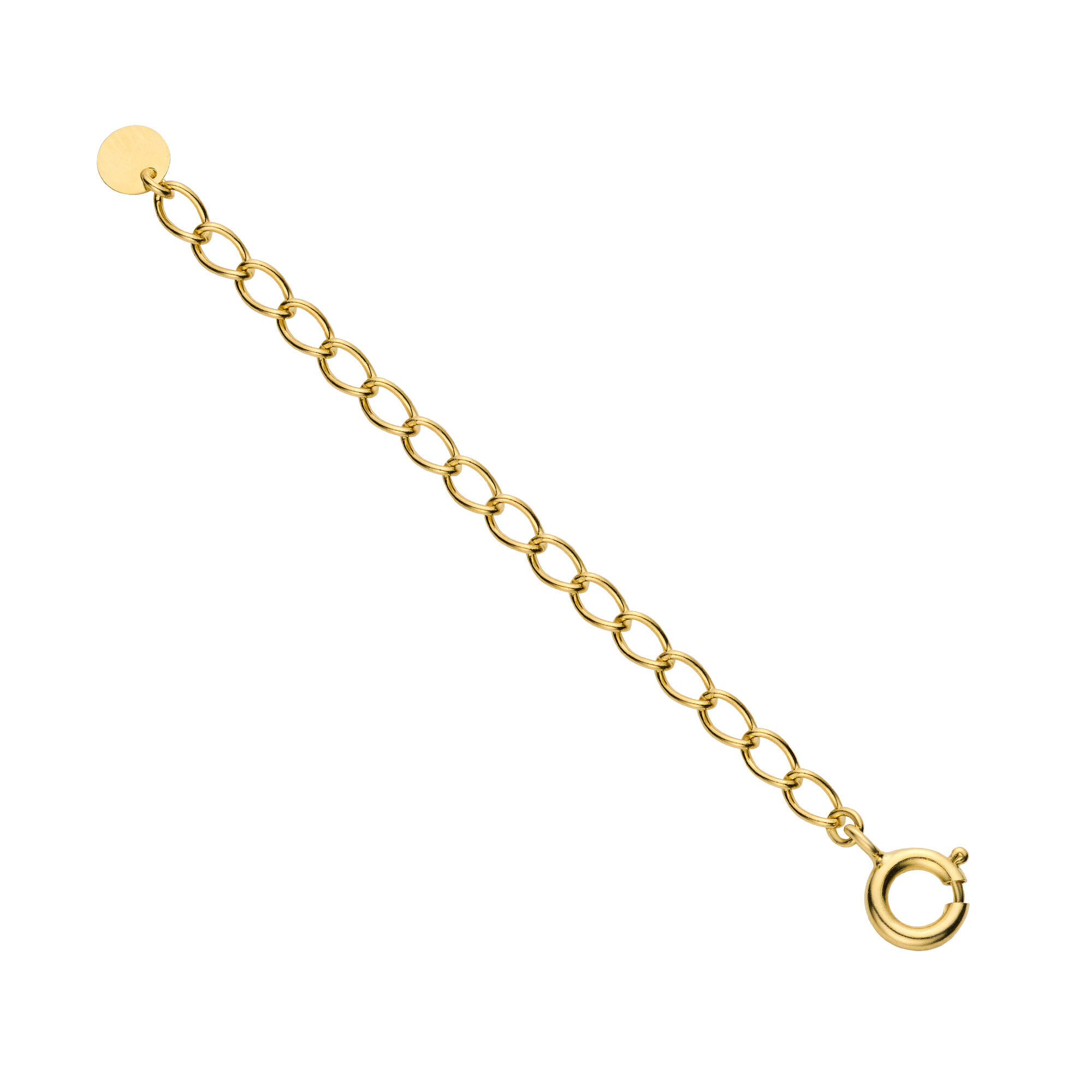 ネックレスの引き輪に取り付けるだけで長さをプラスできるイエローカラーのアジャスターチェーン。