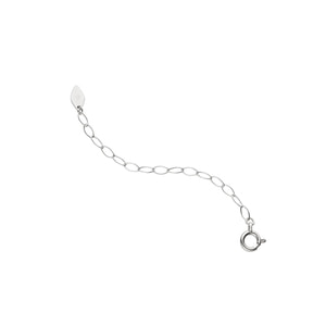 ネックレスの引き輪に取り付けるだけで長さをプラスできるホワイトゴールドのアジャスターチェーン。