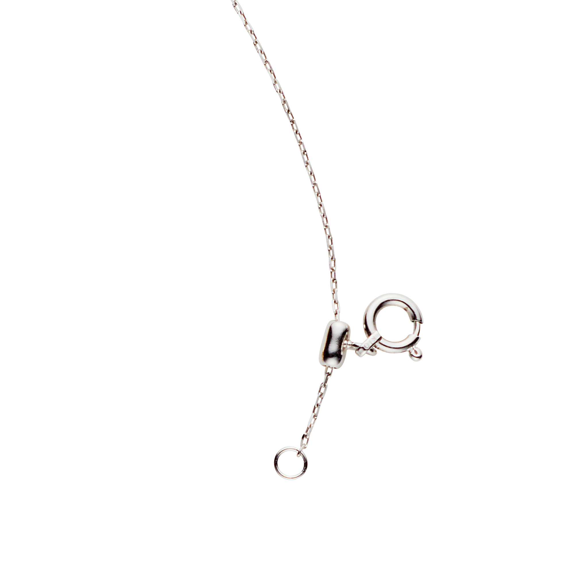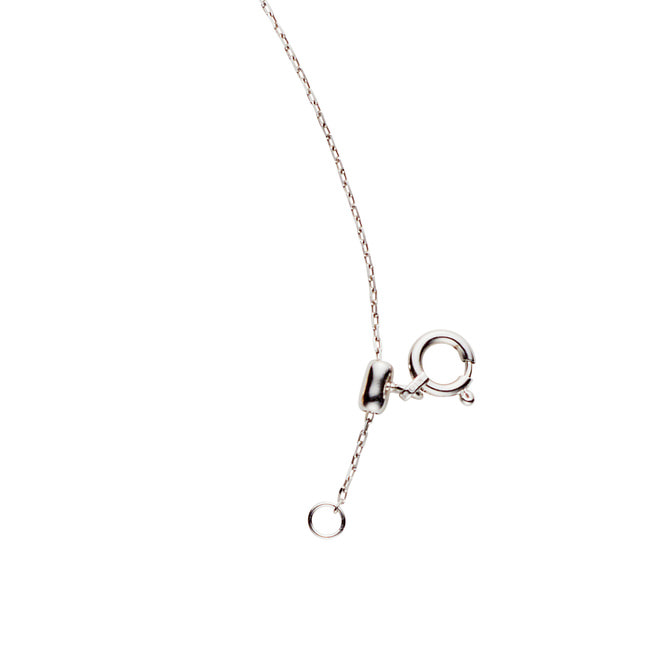 ネックレスの引き輪に取り付けるだけで長さをプラスできるホワイトゴールドのアジャスターチェーン。