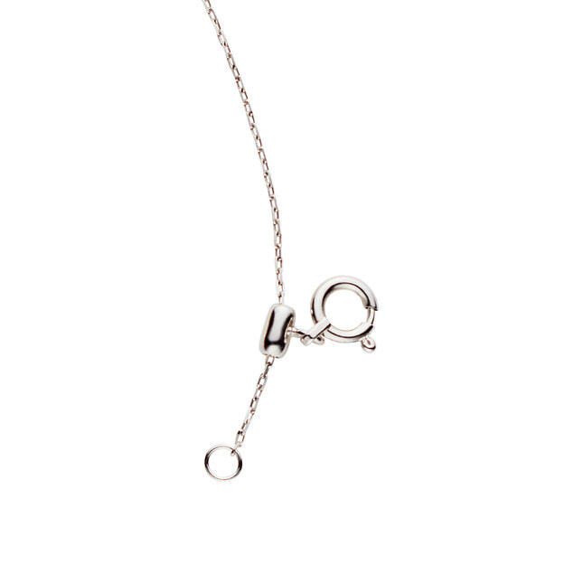 ネックレスの引き輪に取り付けるだけで長さをプラスできるプラチナのアジャスターチェーン。