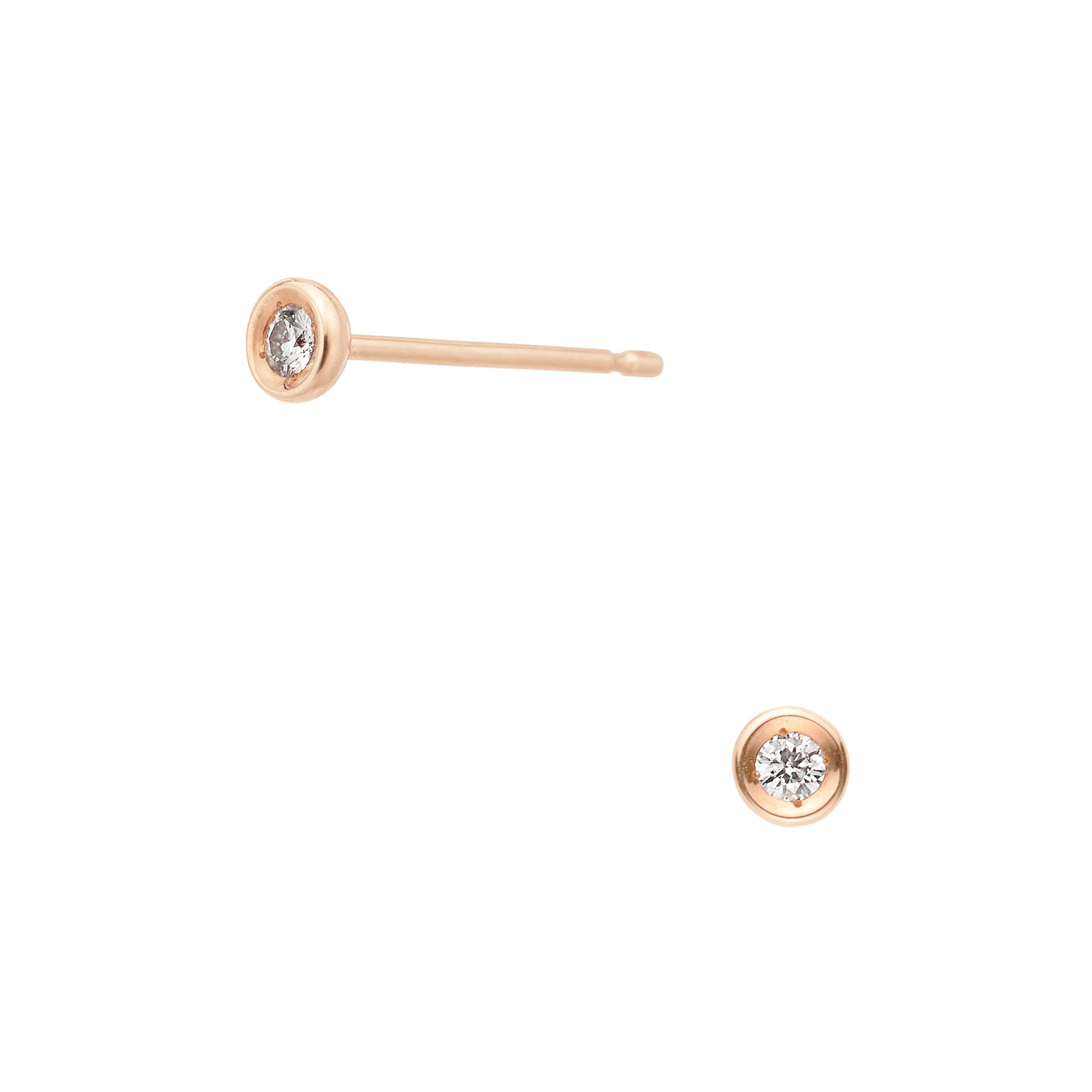 ピンクゴールドのラインでなめらかに縁取られた一粒ダイヤモンドピアス。