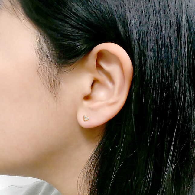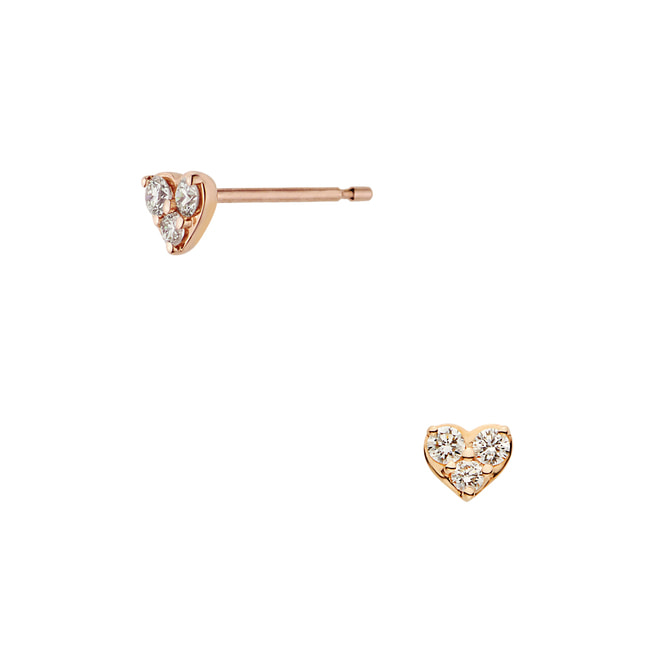 ピンクゴールドのハートモチーフにダイヤモンドが3石輝く可愛らしいピアス。