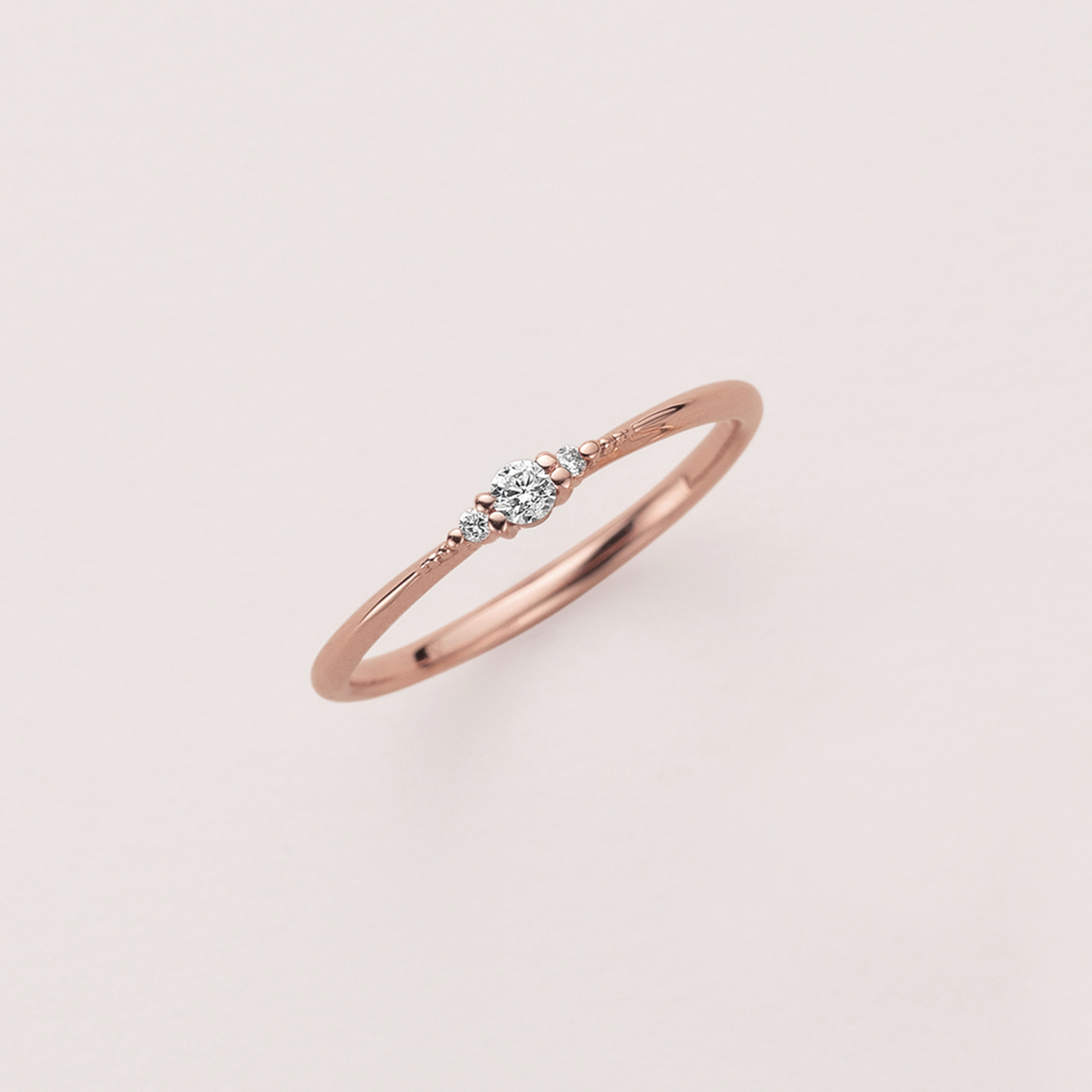 すっきりとしたストレートのアームに3石のダイヤモンドが輝くデザイン。