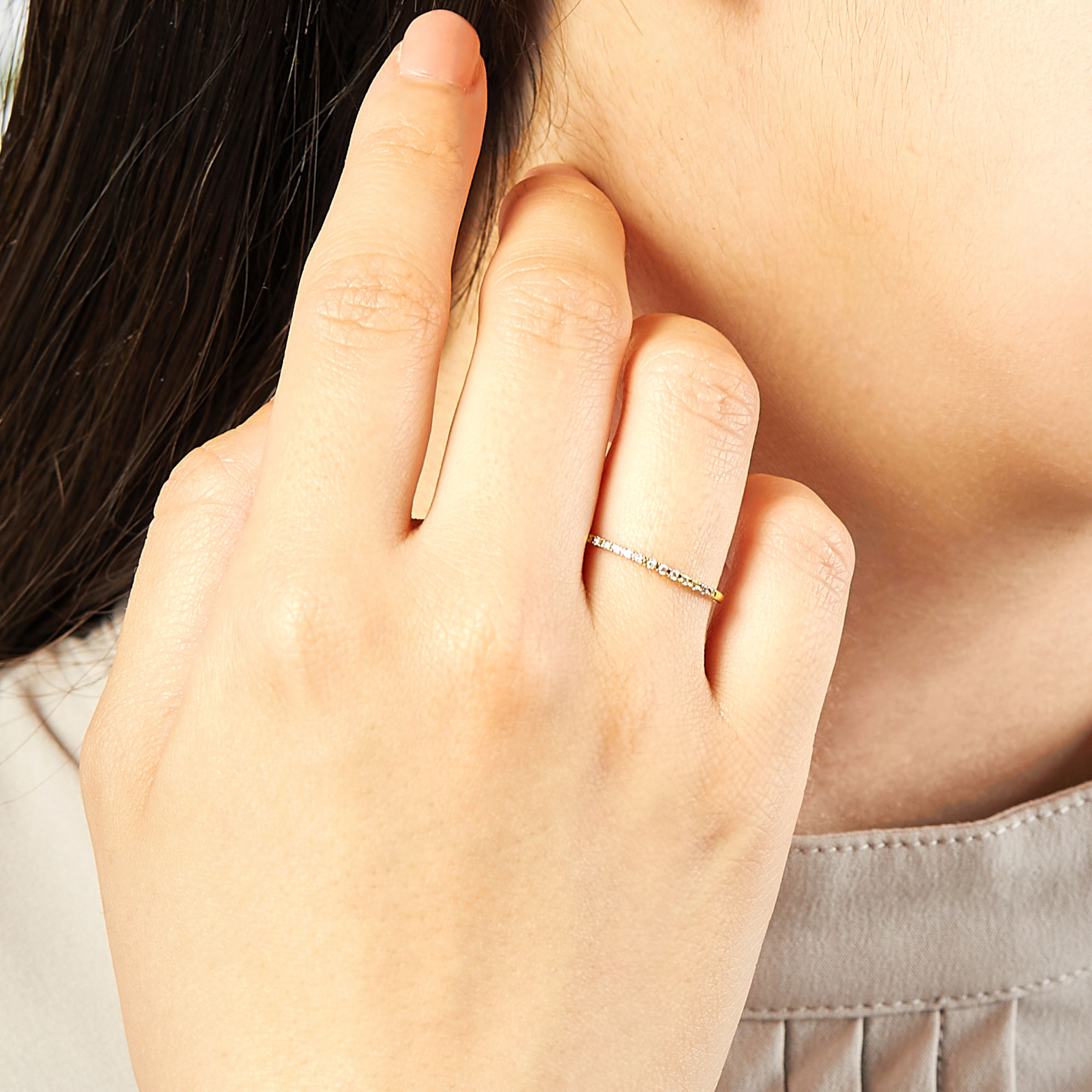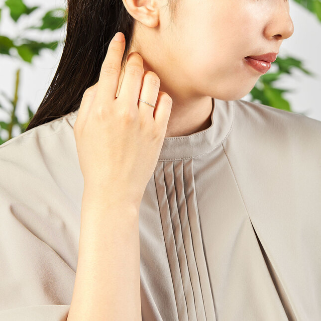シンプルな一本使いはもちろん、お手持ちのリングと重ね着けすれば輝きが増して、より華やかな手元に。