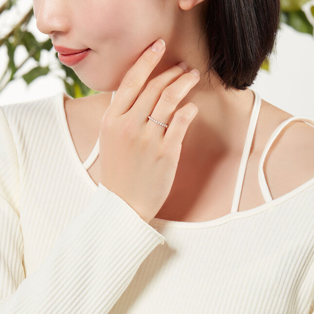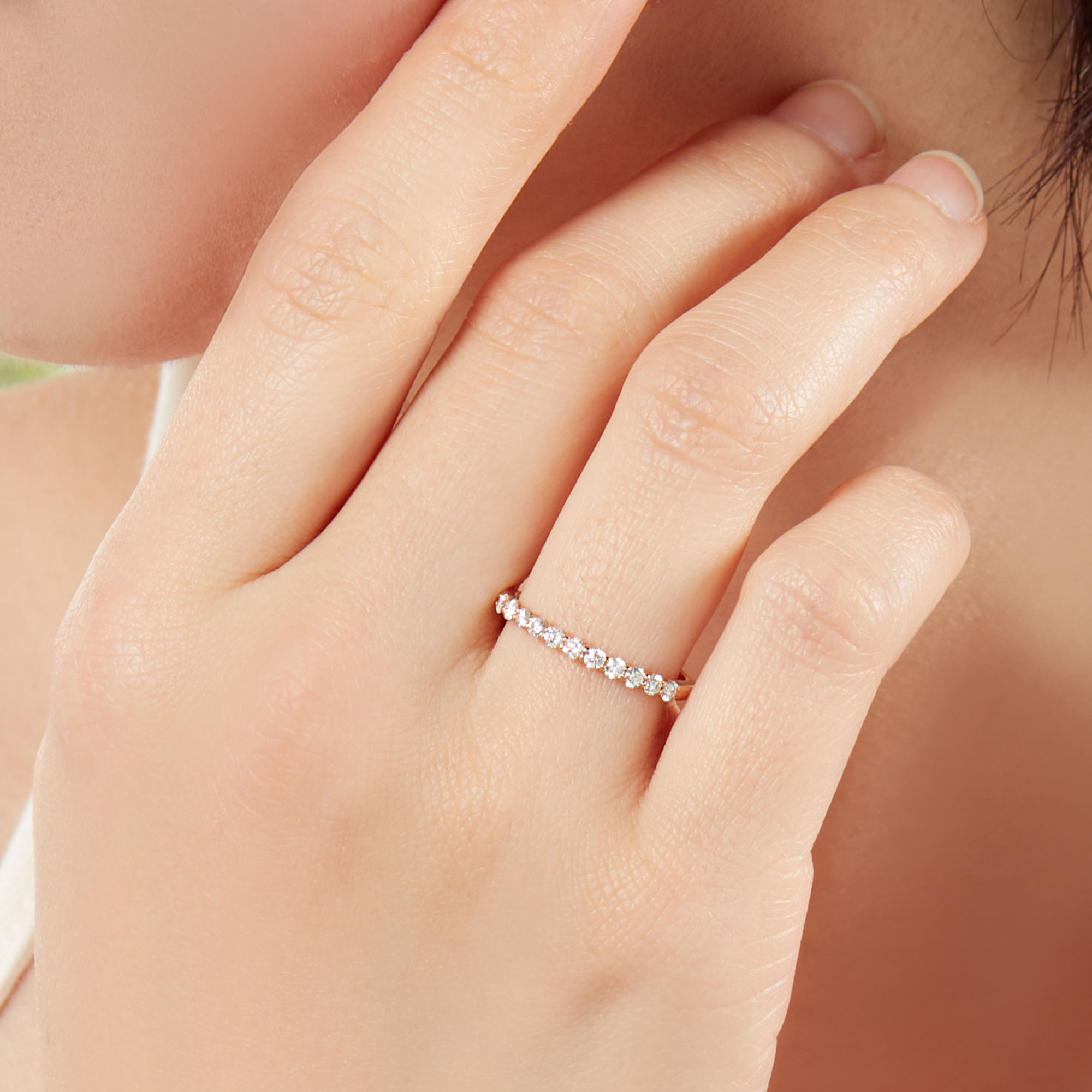 流行に左右されない定番スタイルとして、万能なコーディネート力をもつハーフエタニティリング。