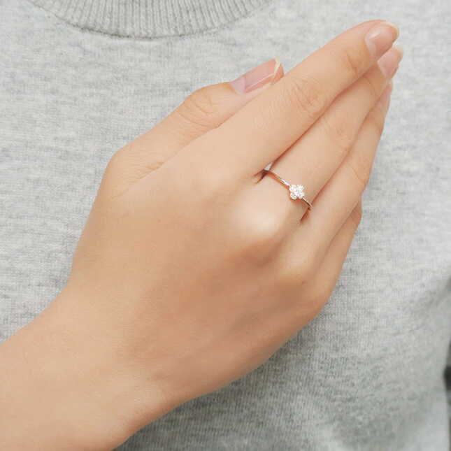 中心のダイヤモンドは花びらより一段高くセッティングし、程よく立体的なつくりです。