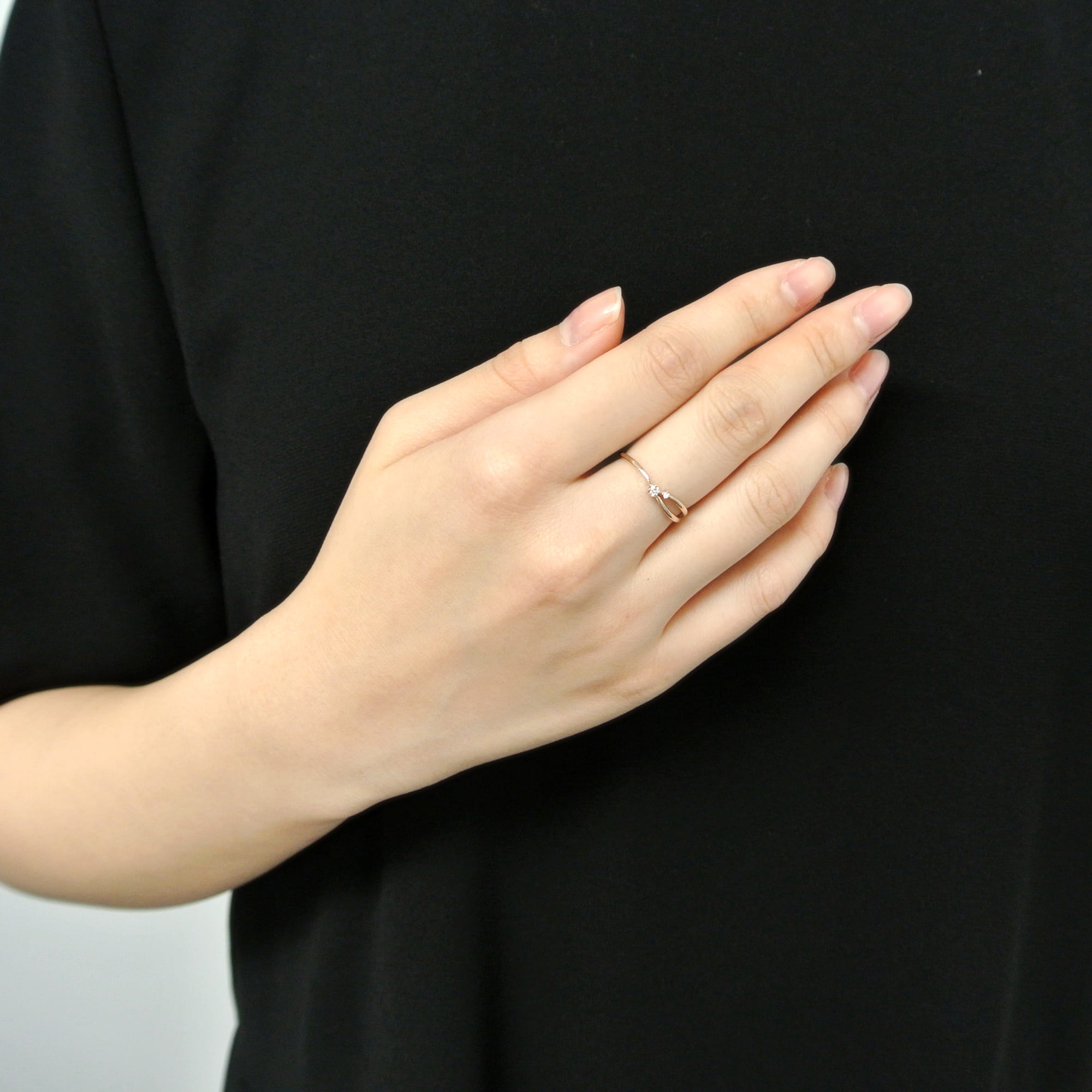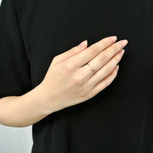 流線形でV字のフォルムが指を長くきれいに見せ、ピンクゴールドの優しい輝きと繊細なディテールが華奢で女性らしい手元にしてくれます。