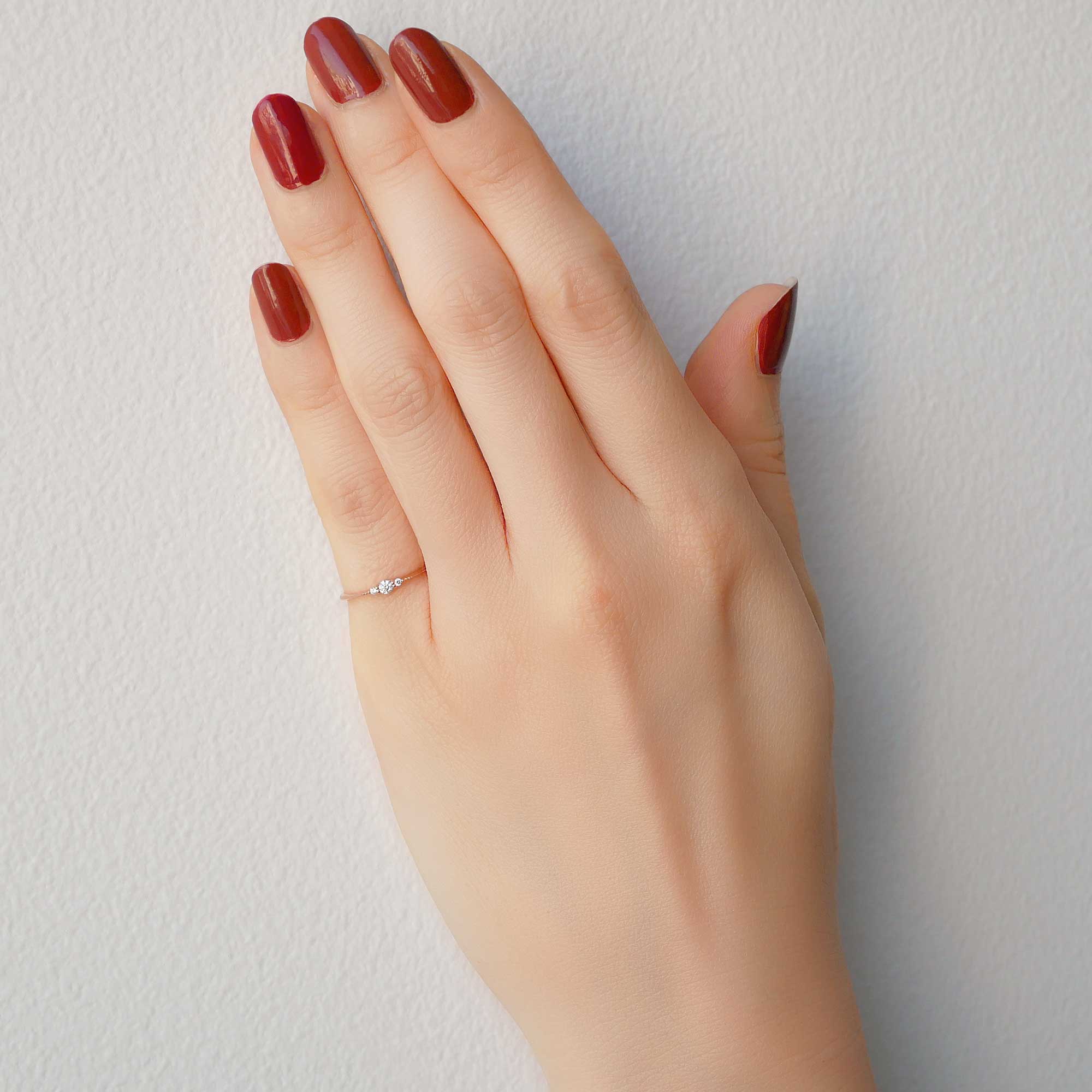 すっきりとしたストレートのアームに3石のダイヤモンドが輝くデザイン。