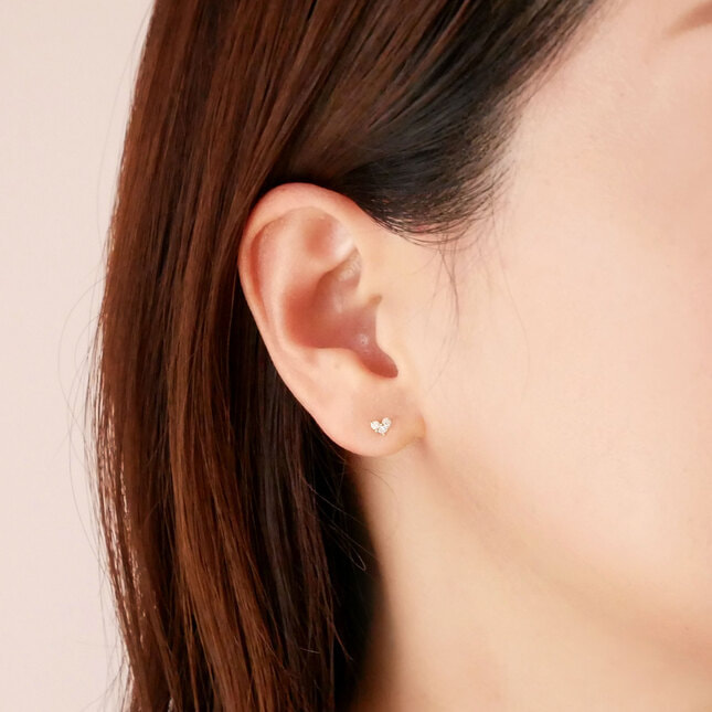 プチサイズながらも、ダイヤモンドのきらめきが印象的でコーディネートを上品に、可愛らしく見せてくれます。