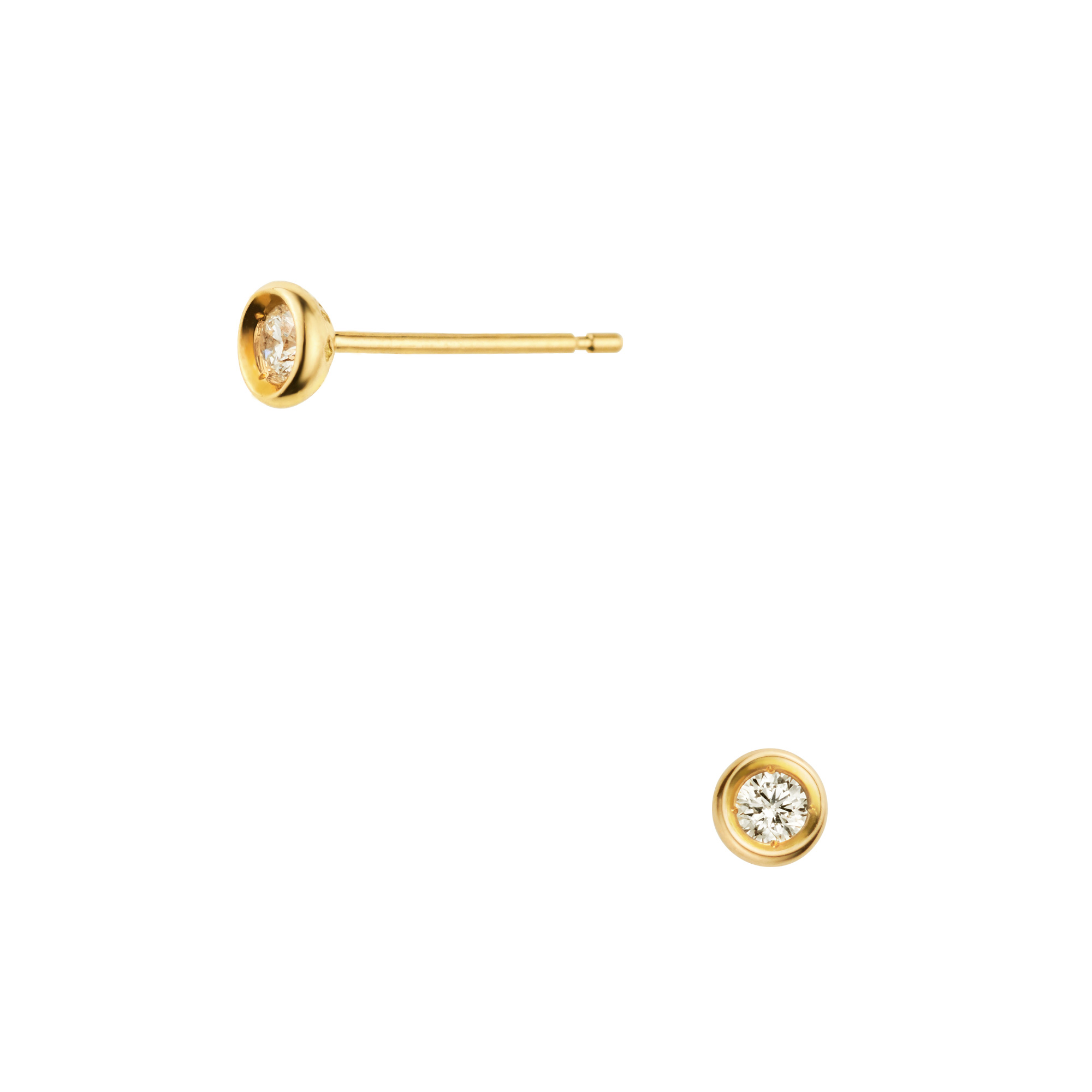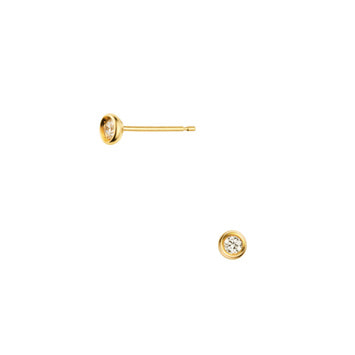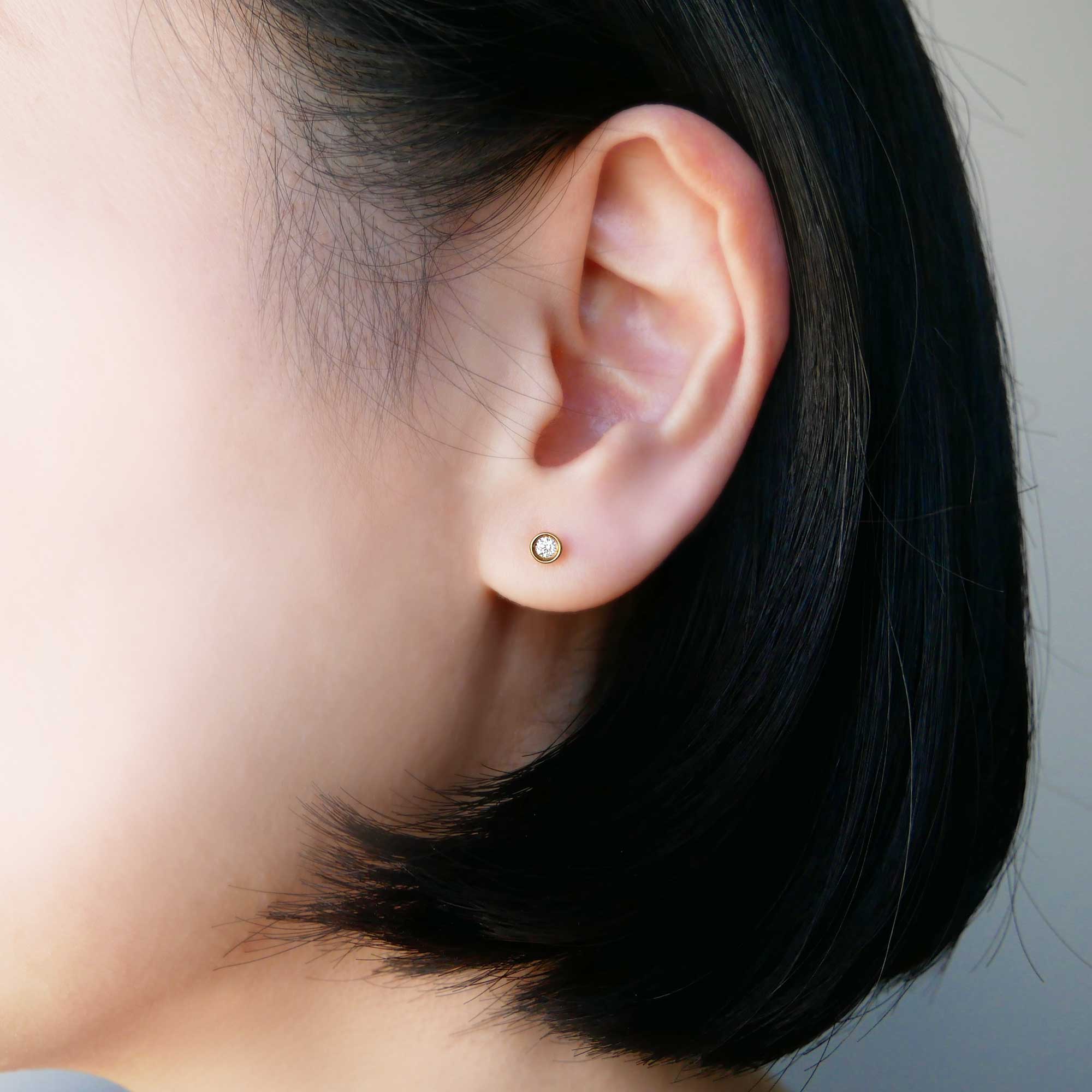 イエローゴールドのラインでなめらかに縁取られた一粒ダイヤモンドピアス。