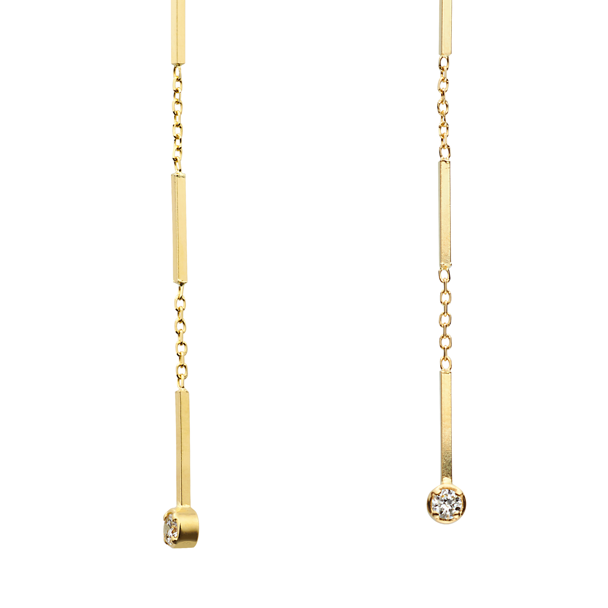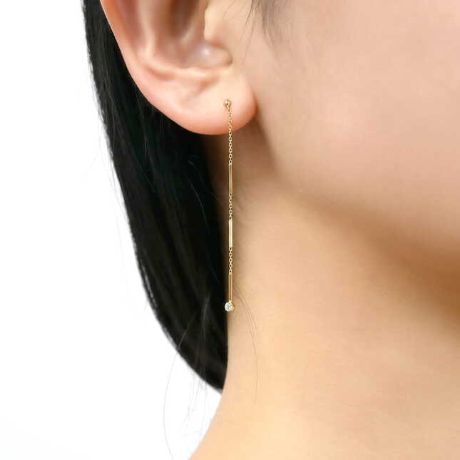すっきりとした細い角柱が連なったピアス。