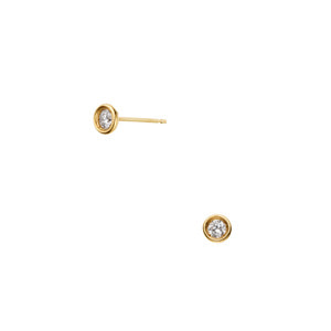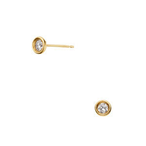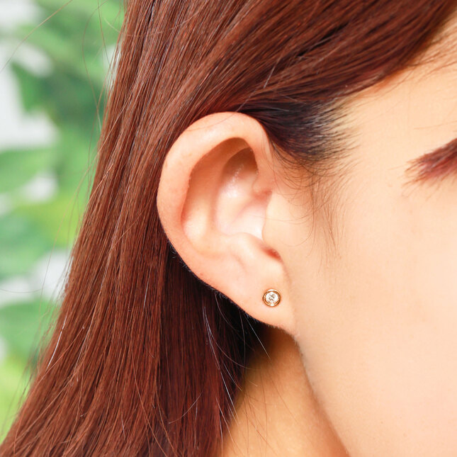 イエローゴールドのラインでなめらかに縁取られた一粒ダイヤモンドピアス。