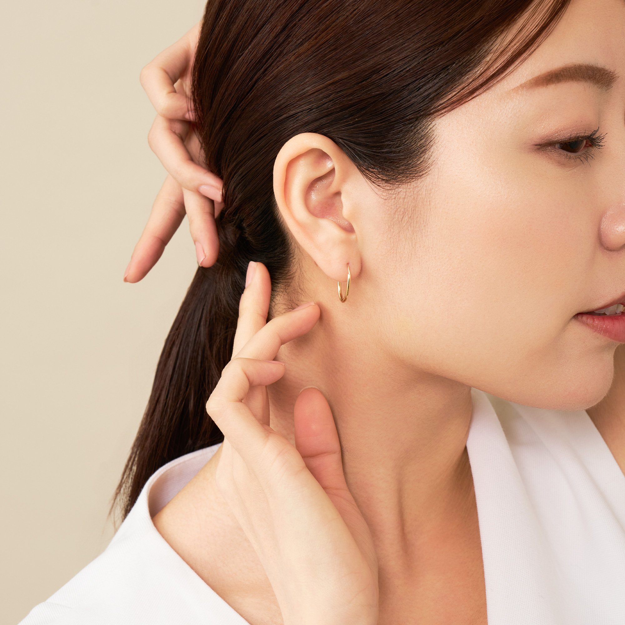上品な楕円形が横顔を大人っぽい印象に。