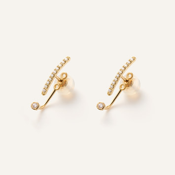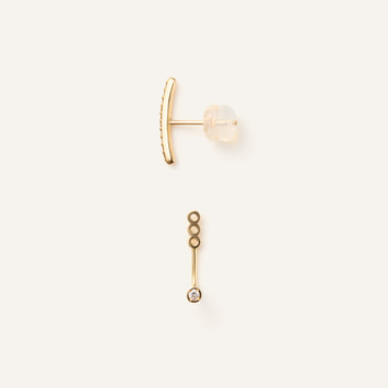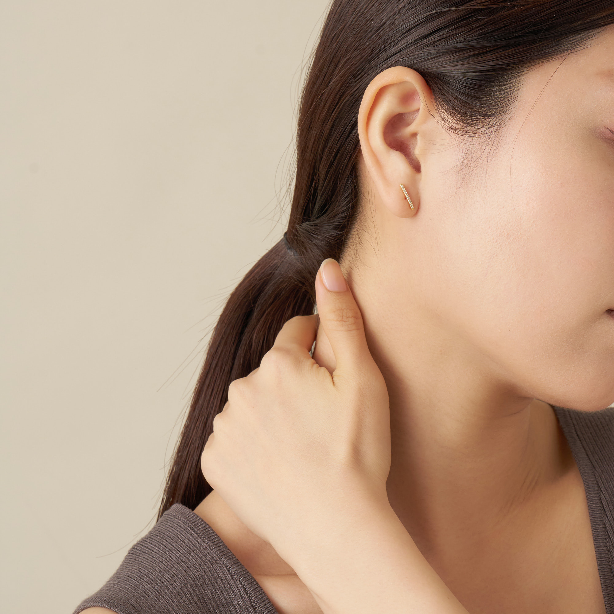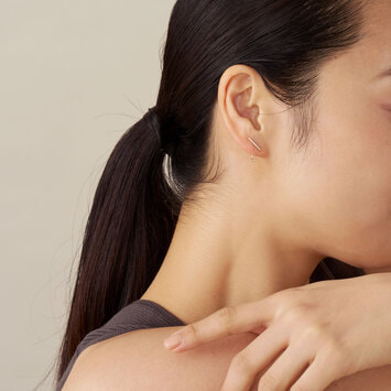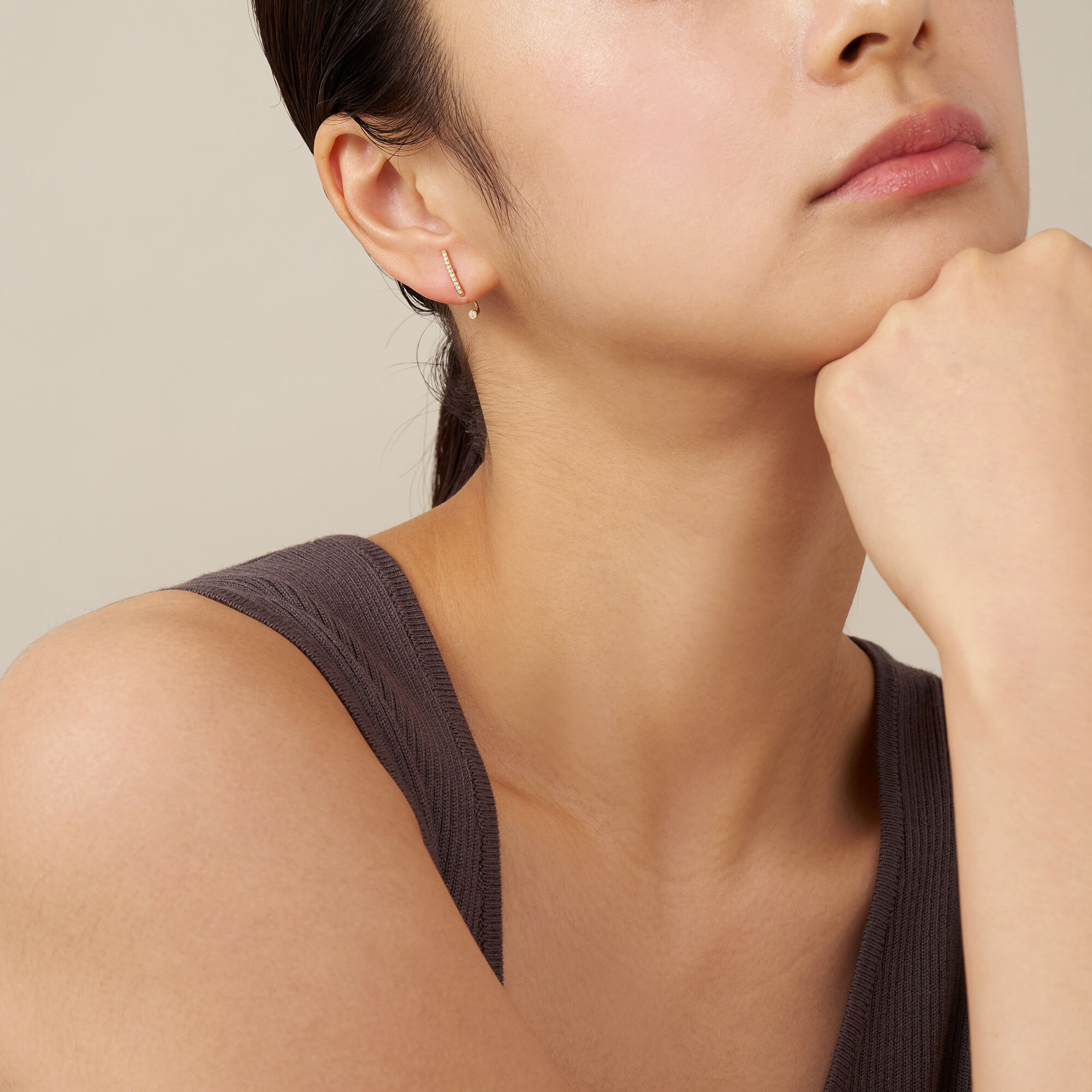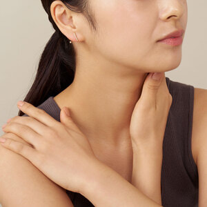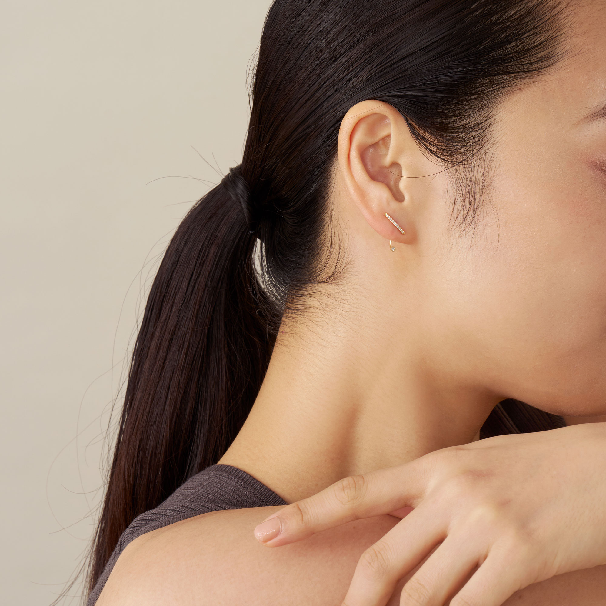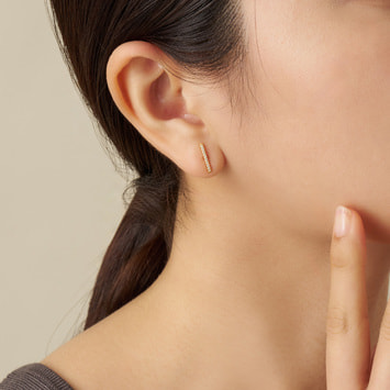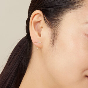 ラインピアスの下には輝く一粒のダイヤモンド。