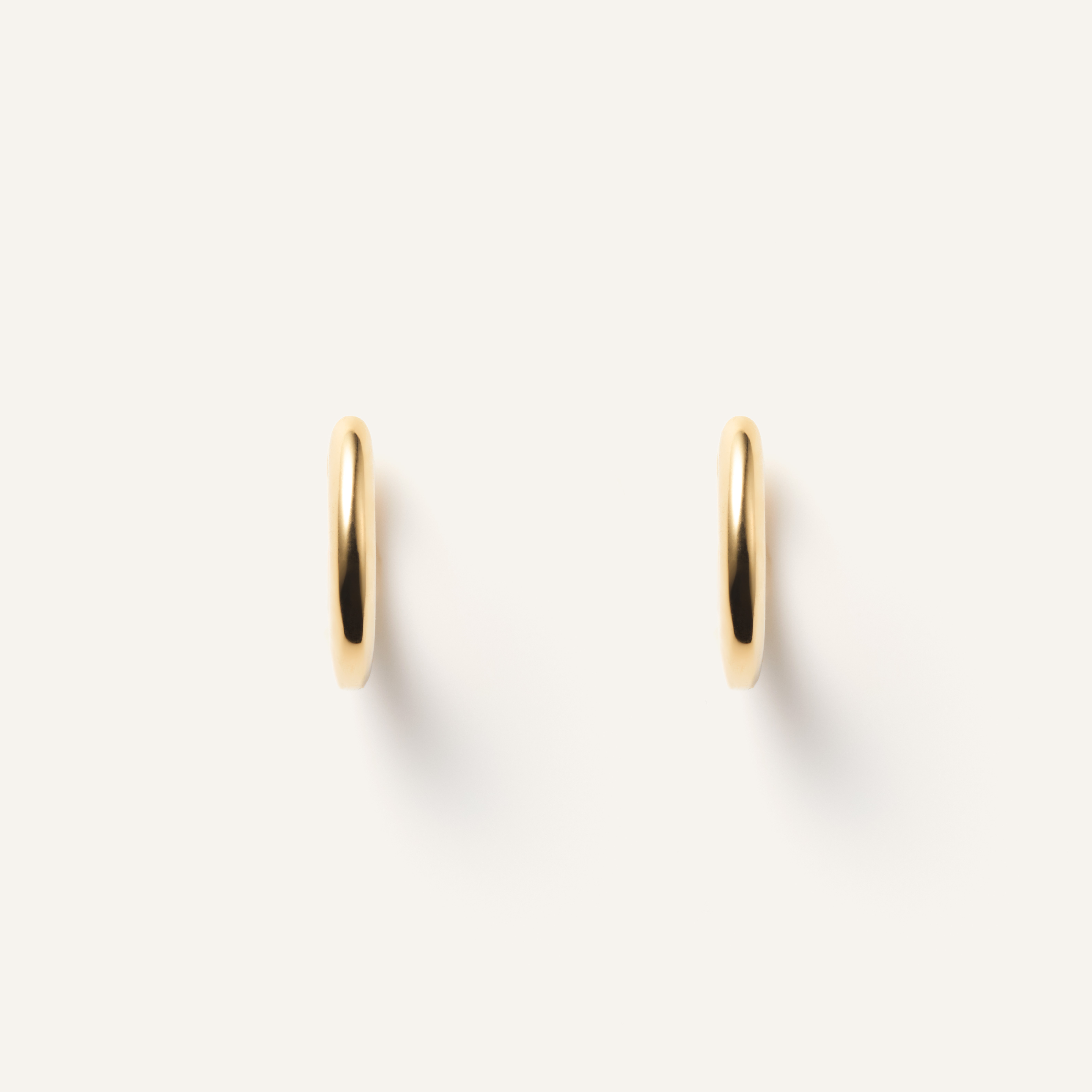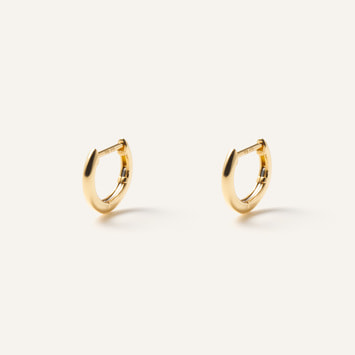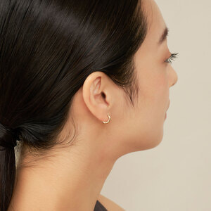 イエローゴールドの繊細な光のラインが弧を描くフープピアス。