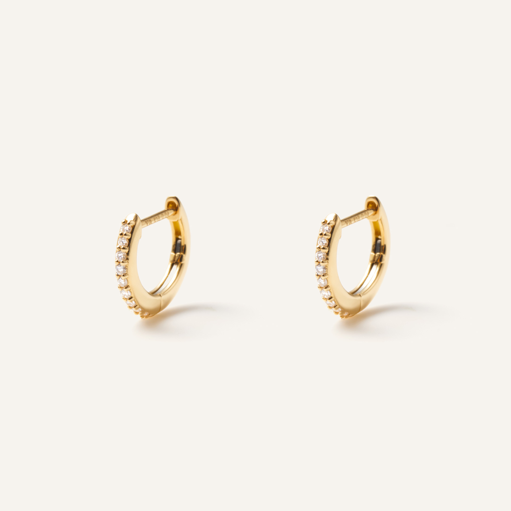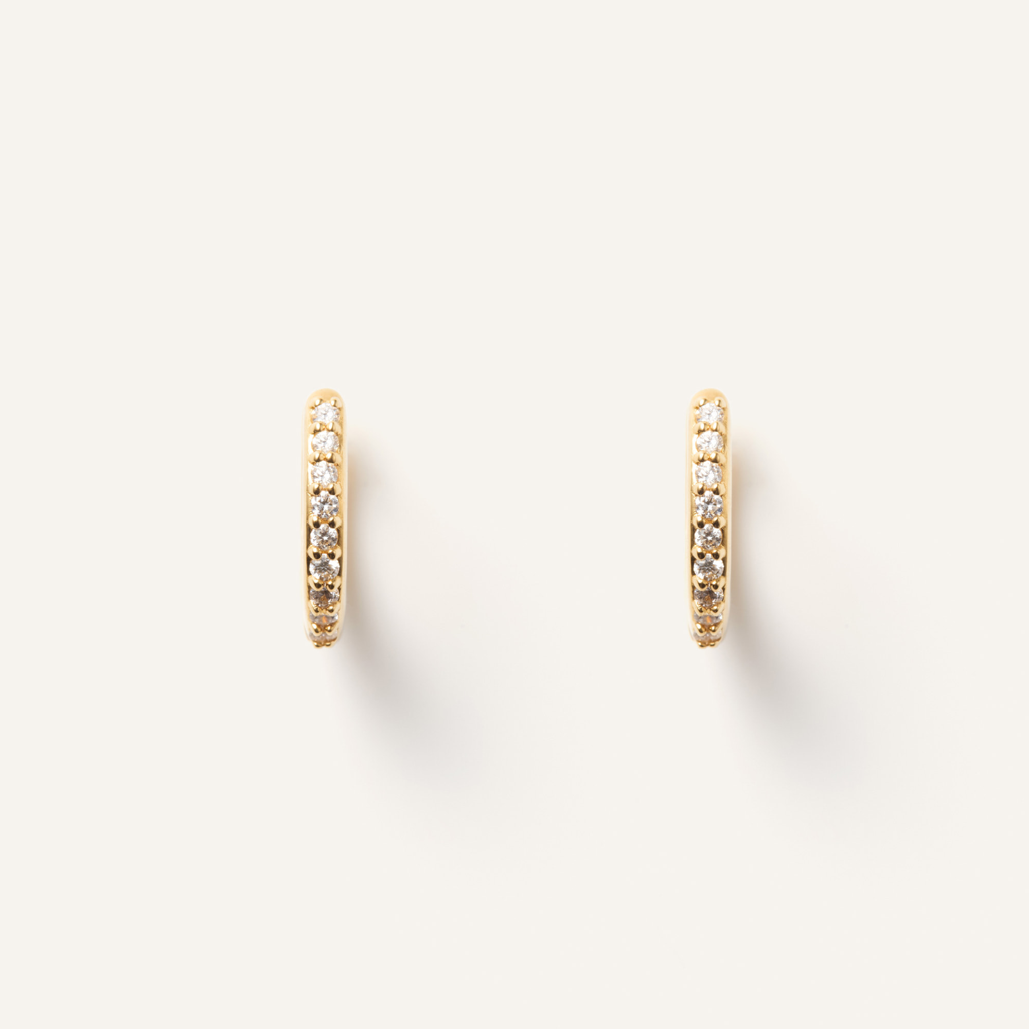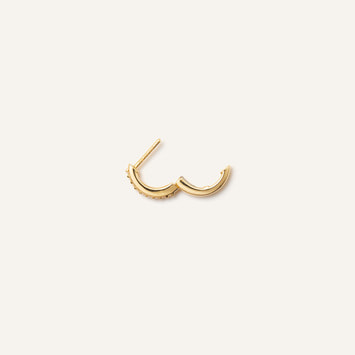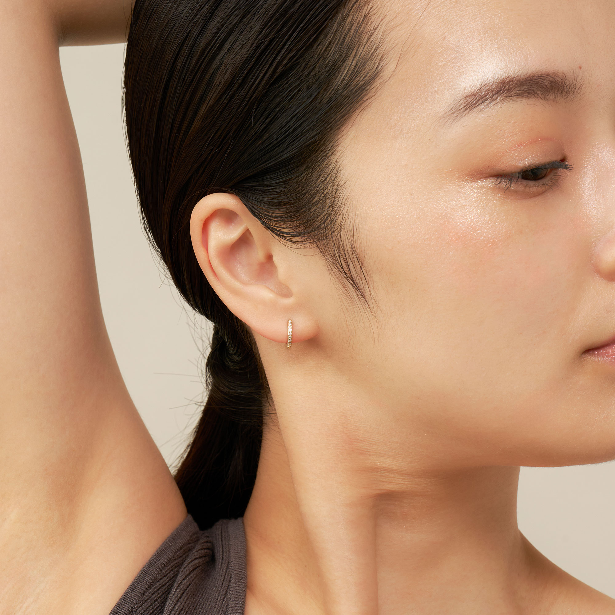ダイヤモンドの繊細なきらめきが弧を描くフープピアス。