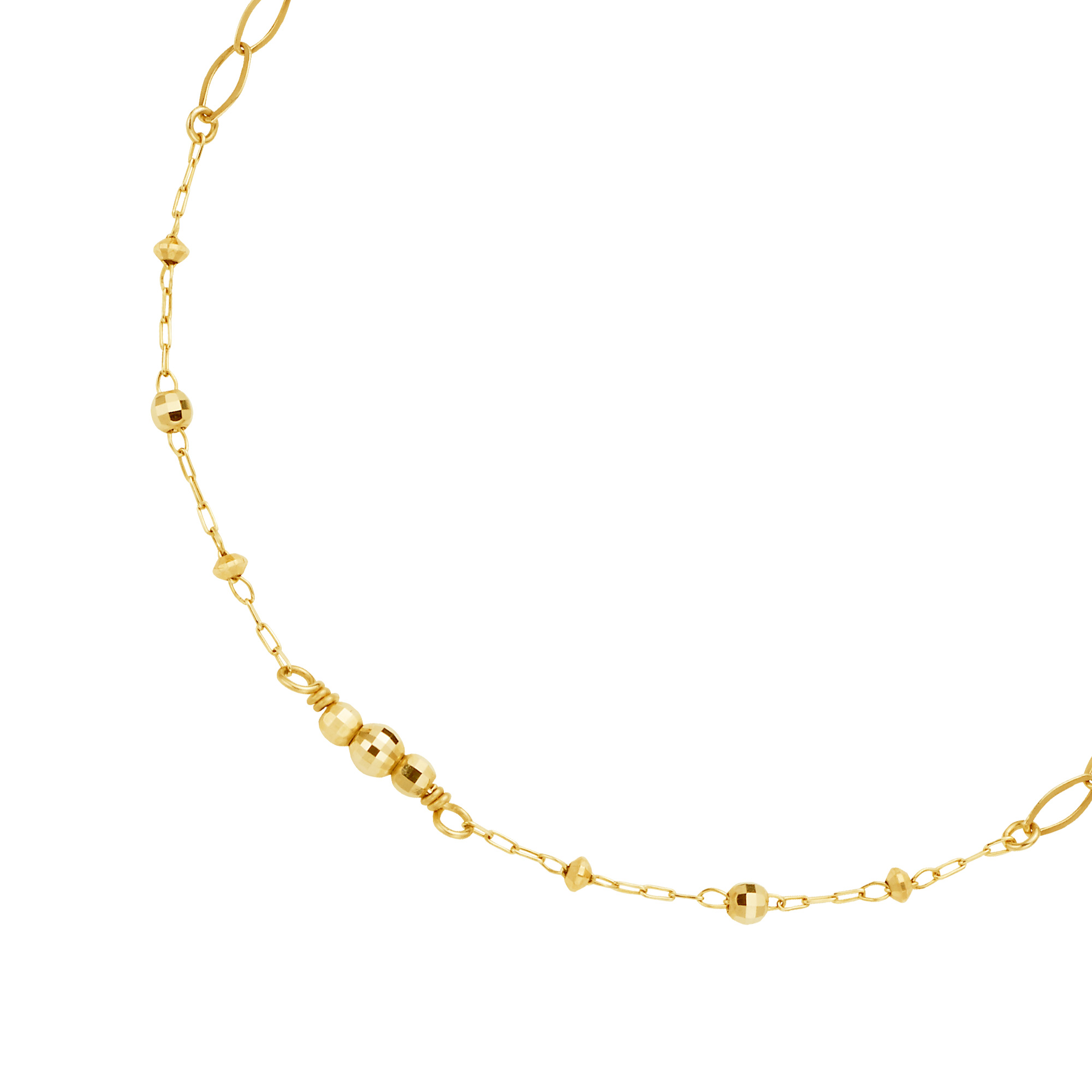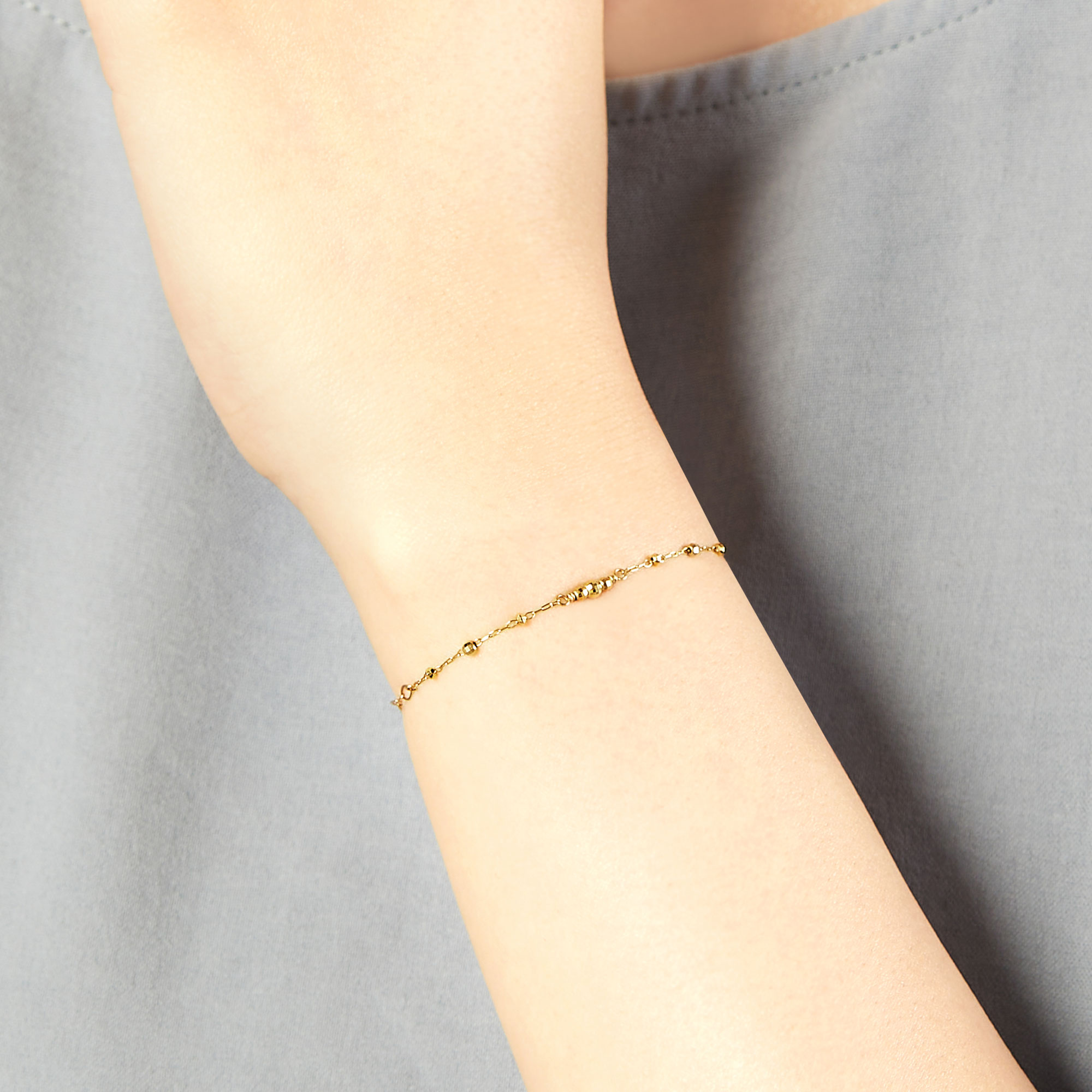 イエローゴールドのチェーンやパーツがミックスされたブレスレット。