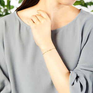 ベーシックなデザインなので腕時計や他のブレスレットとの重ね着けもおすすめです。