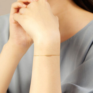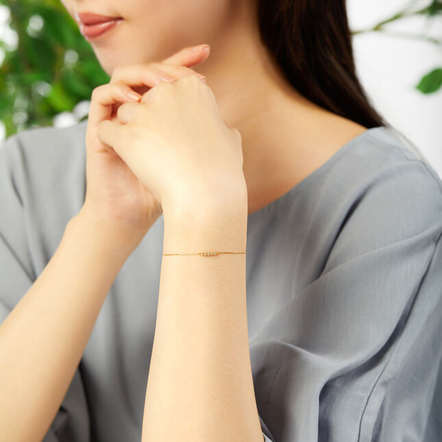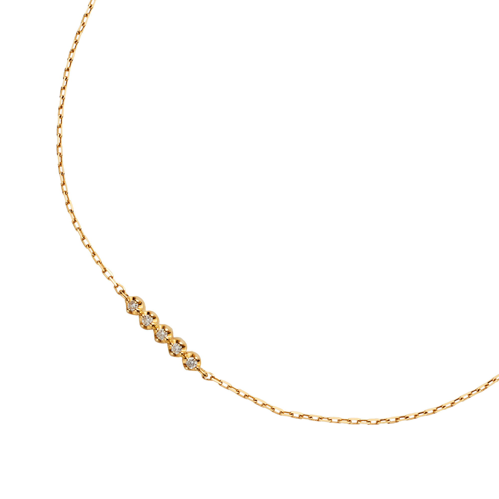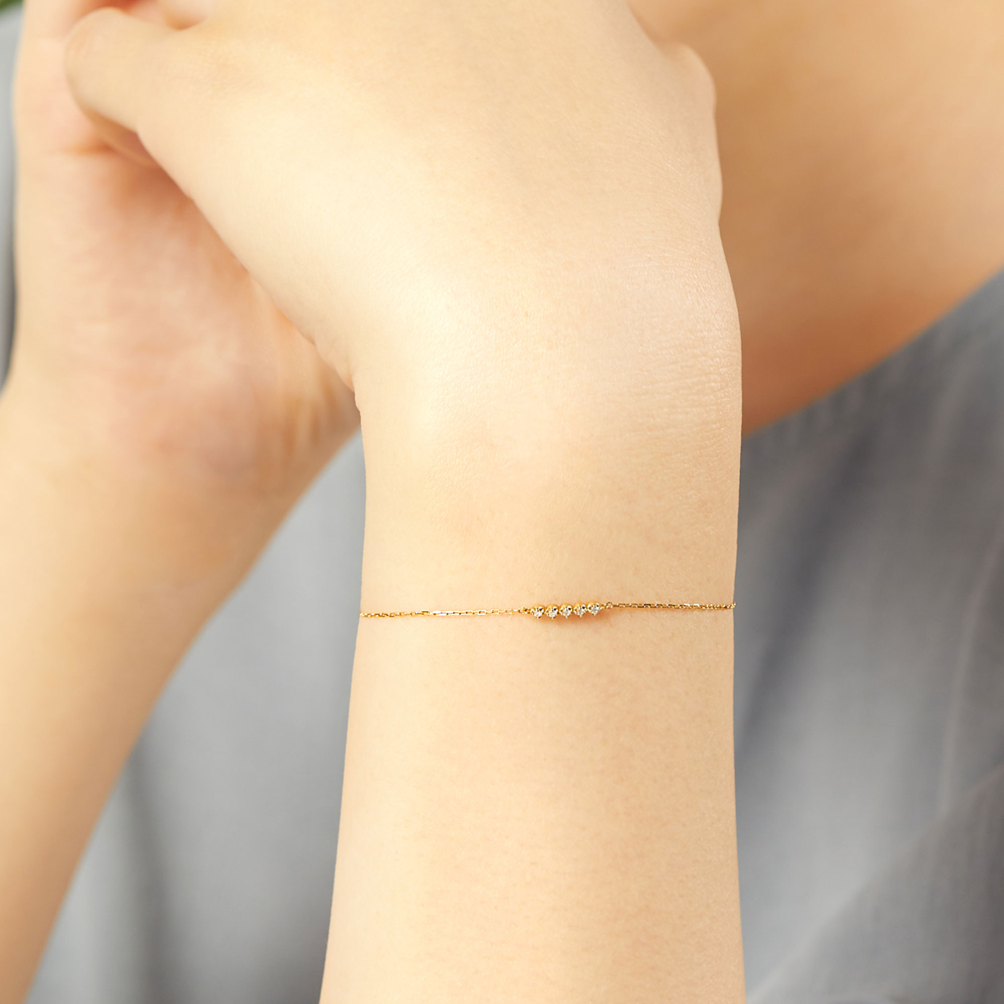 イエローゴールドのチェーンに5石のダイヤモンドがきらめく、華やかなブレスレット。