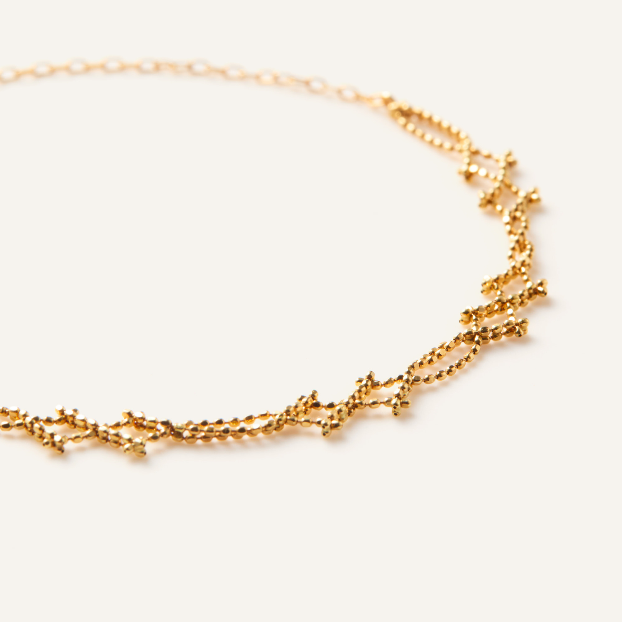 細いボールチェーンを編み込んだかのようなブレスレット。