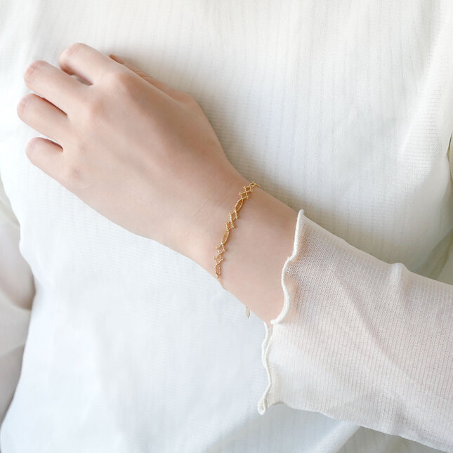 イエローゴールドの煌めきが手元いっぱいに広がります。