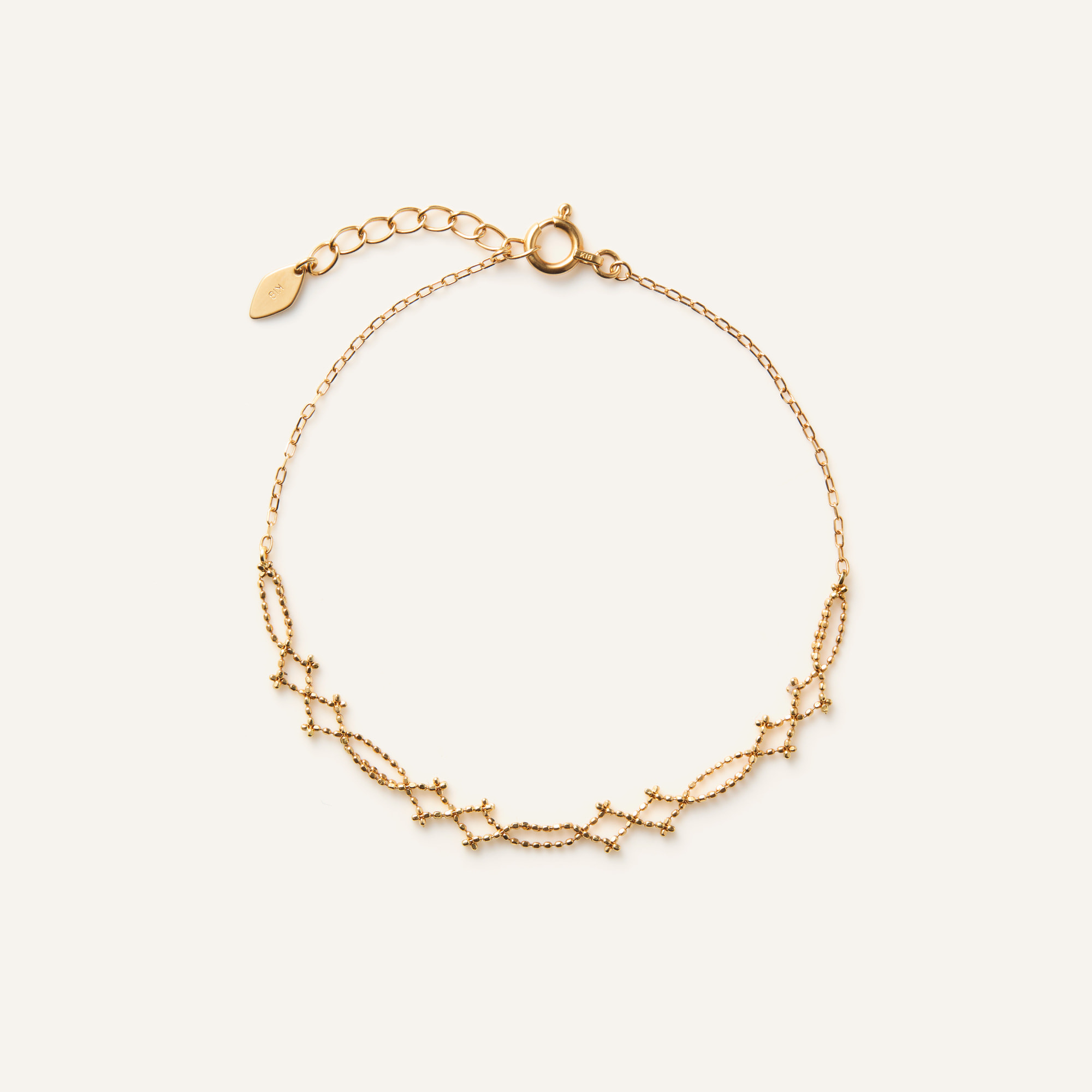 細いボールチェーンを編み込んだかのようなブレスレット。