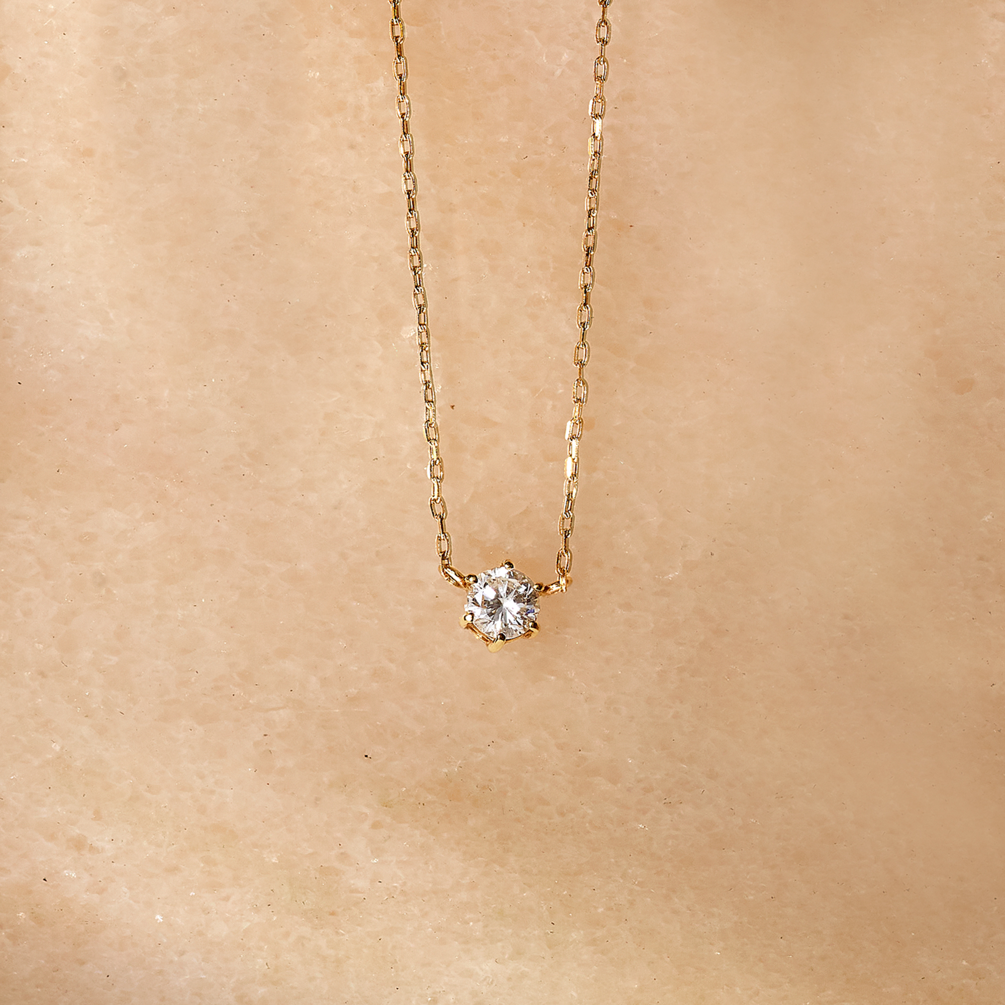 星の瞬きのようにきらめく、一粒ダイヤモンドのネックレス。
