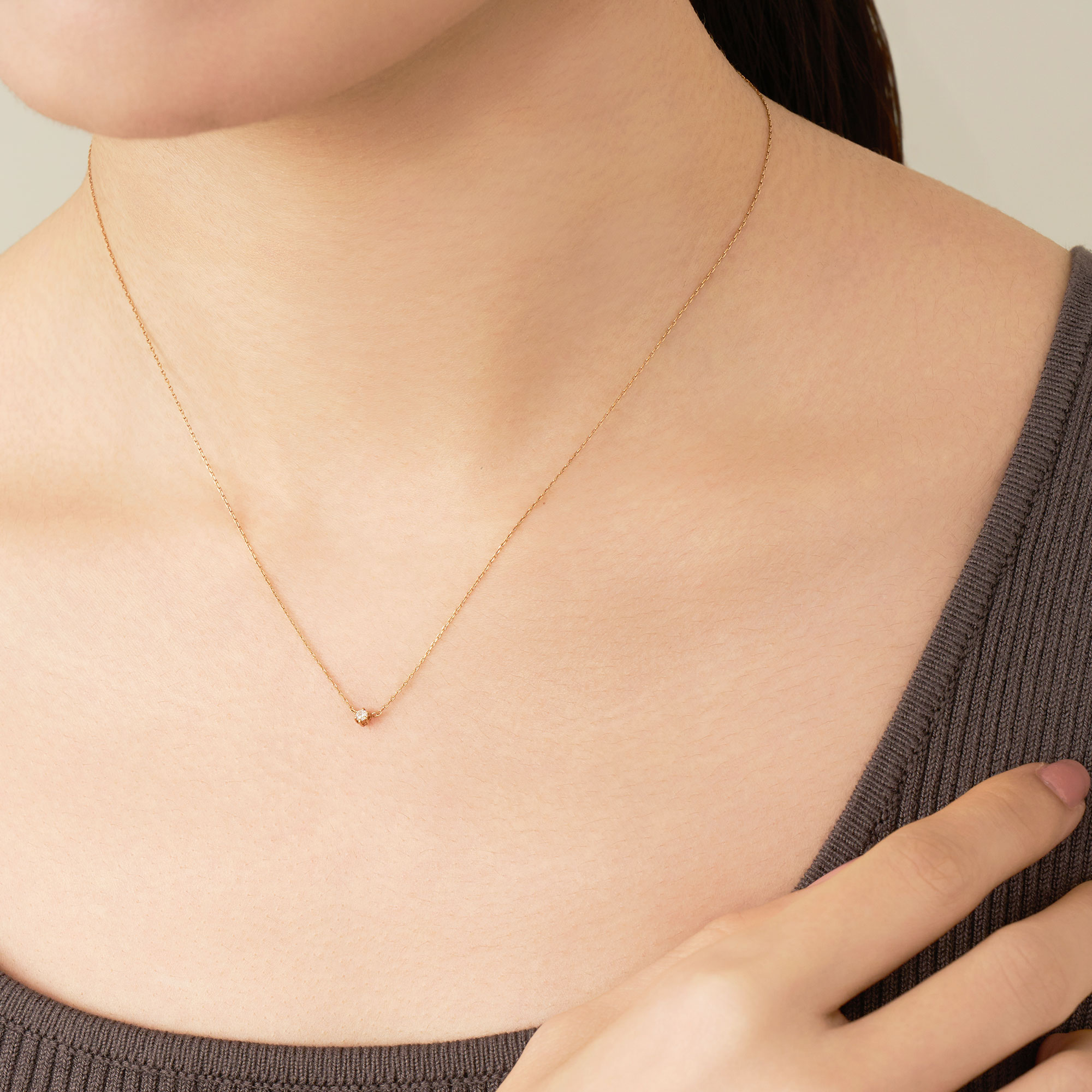 星の瞬きのようにきらめく、一粒ダイヤモンドのネックレス。