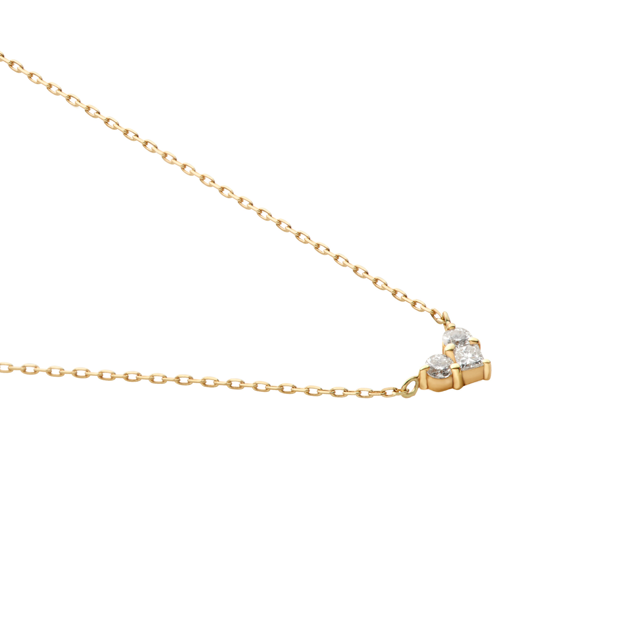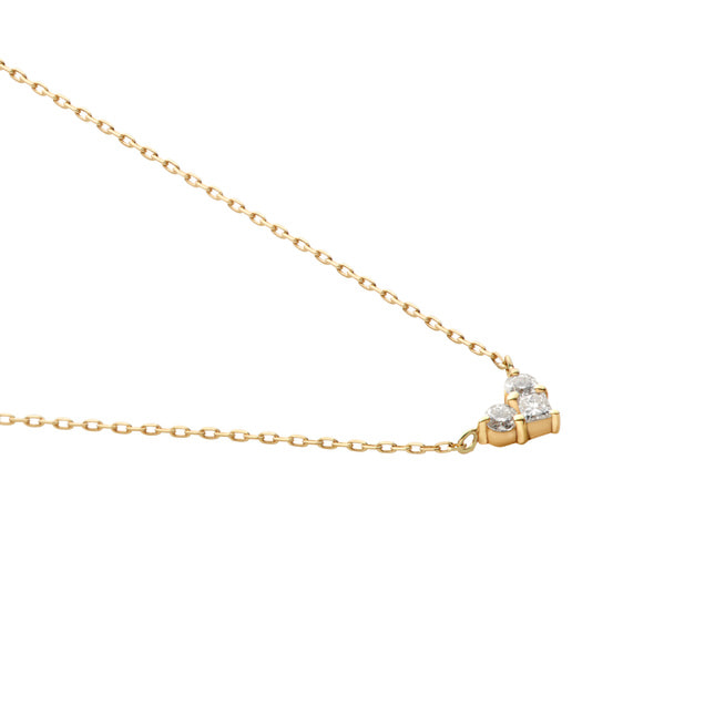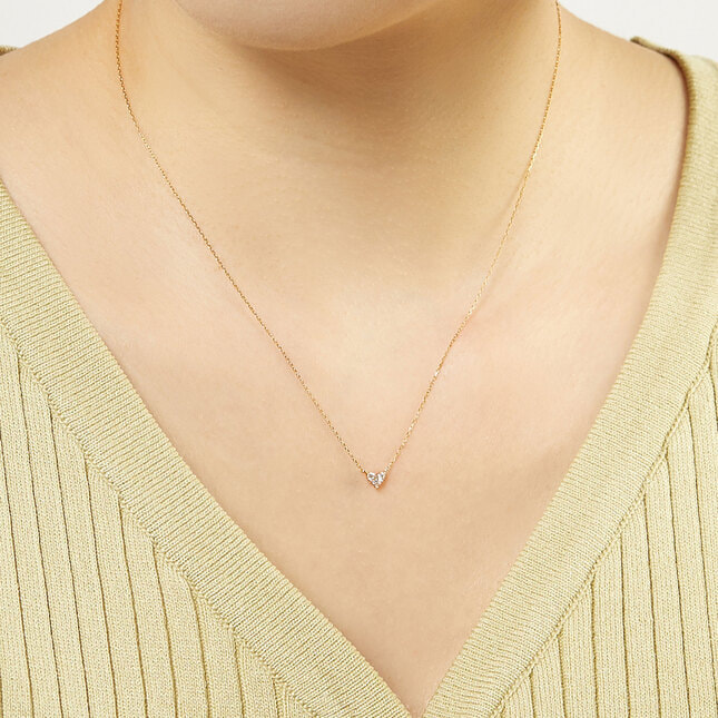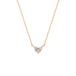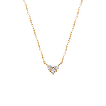 ラウンドカット2石、プリンセスカット1石のダイヤモンドを使ったシンプル&スウィートなハートネックレス。