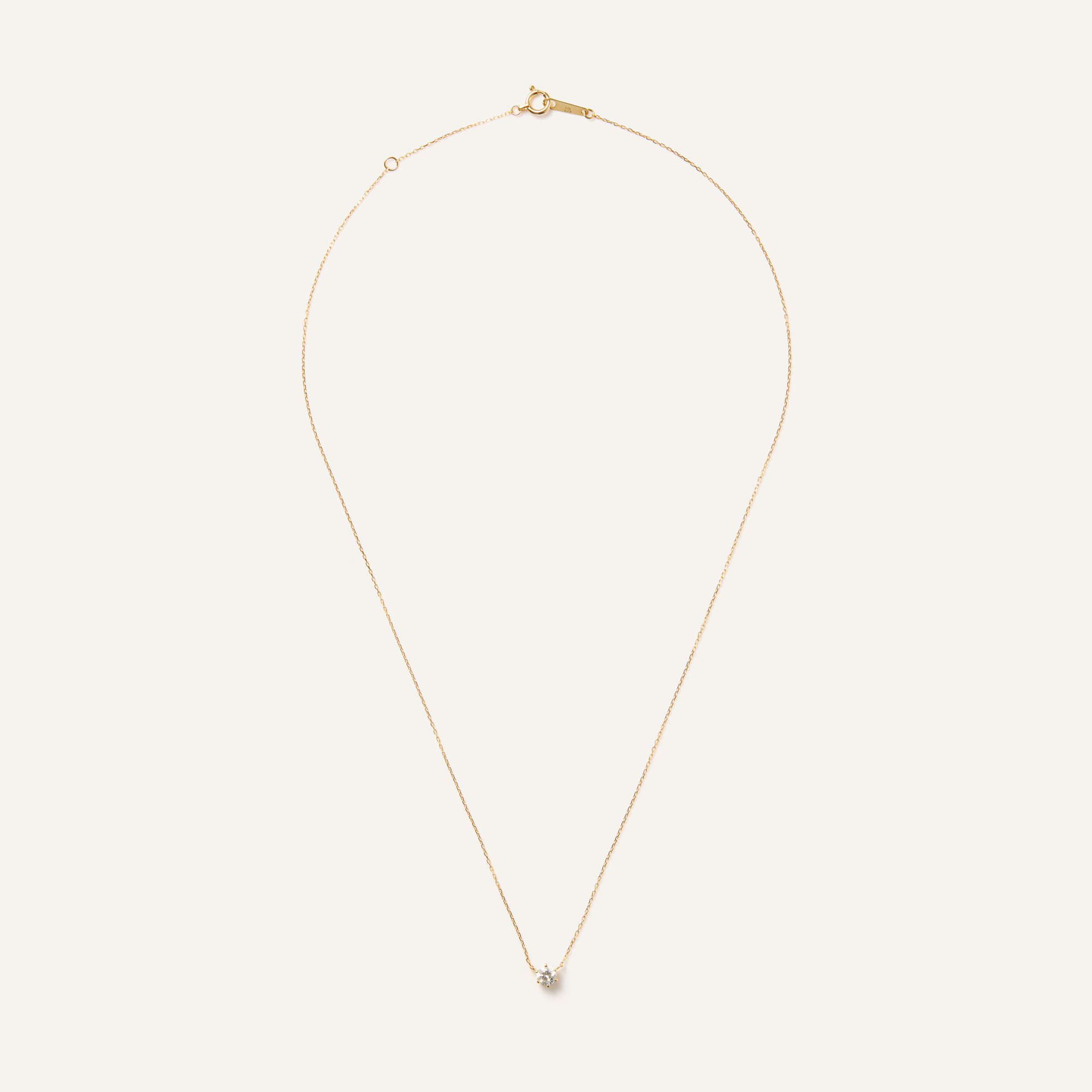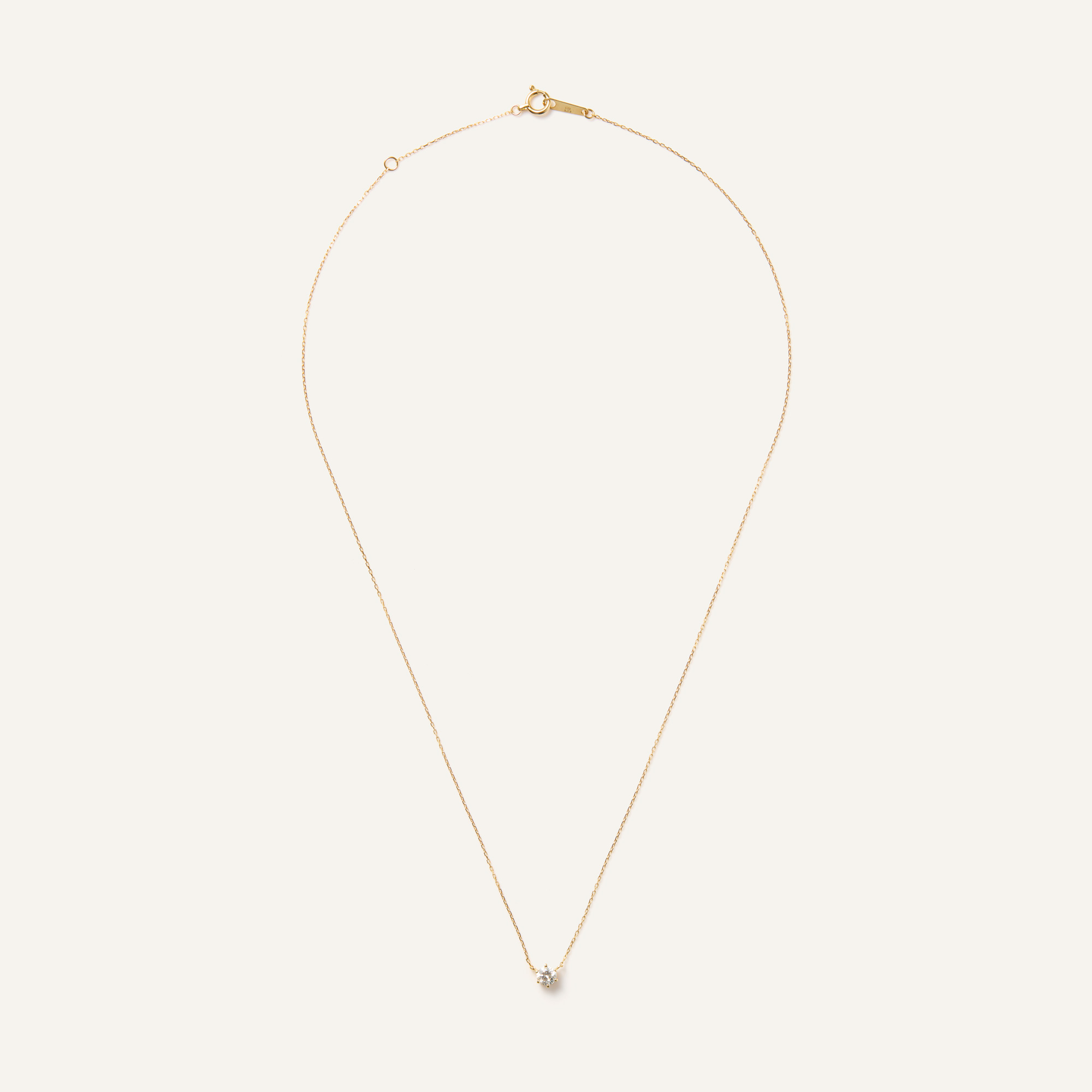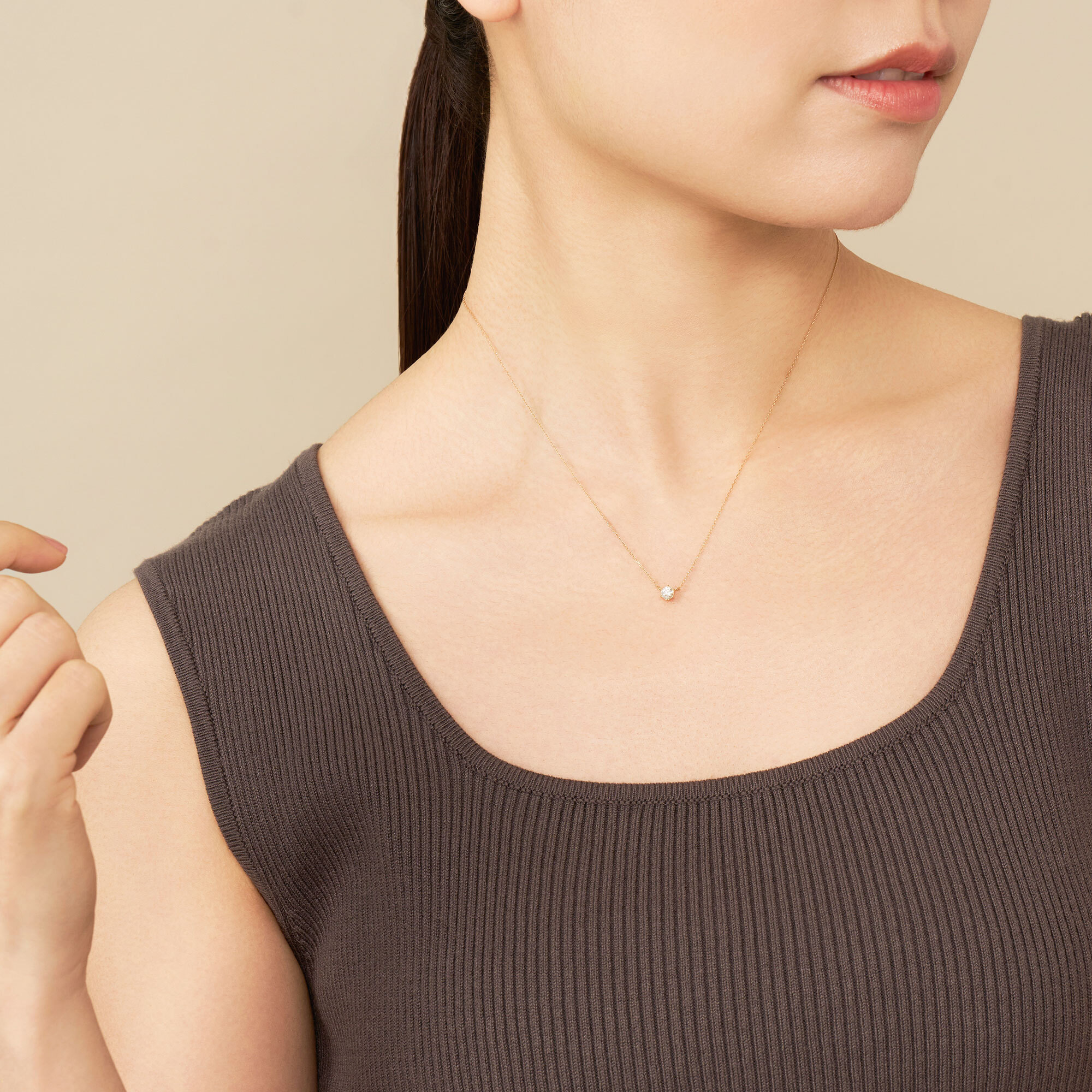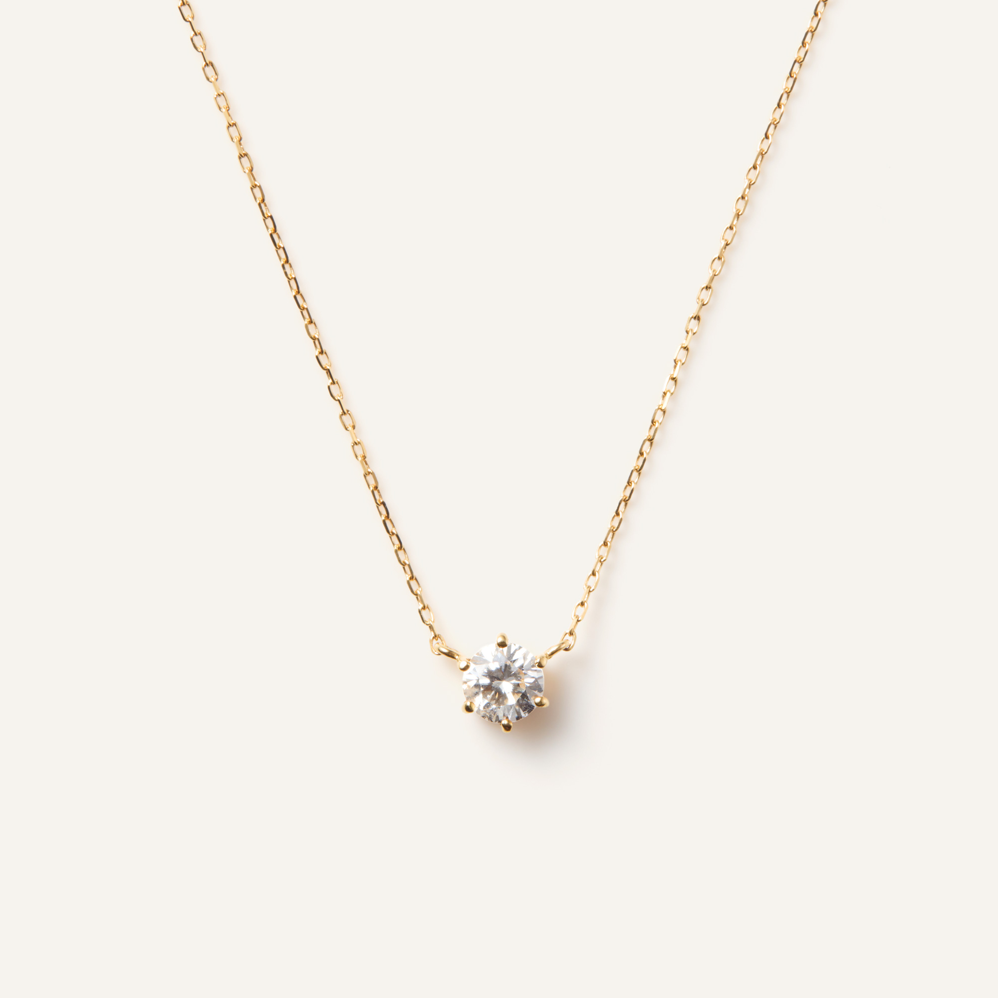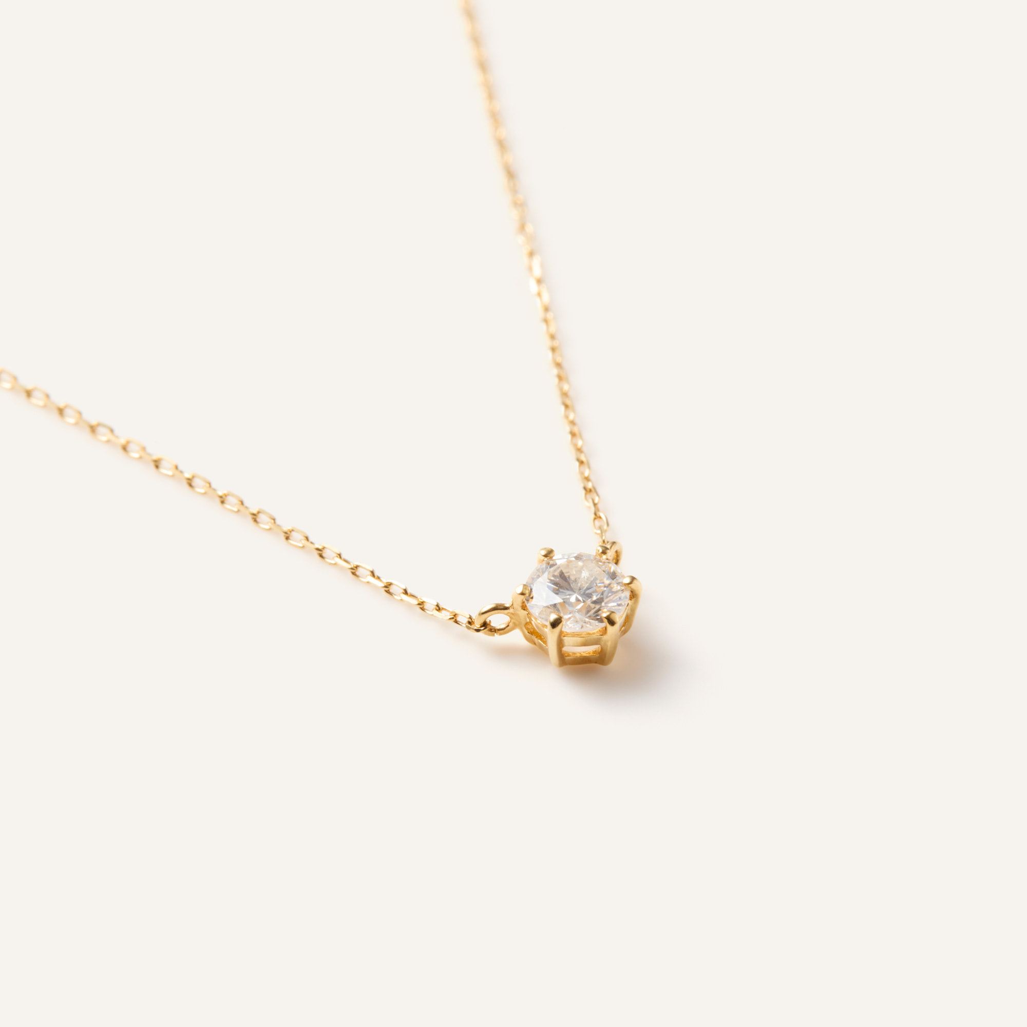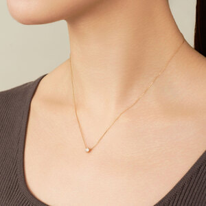 さりげなくアクセントにもなるイエローゴールドの華奢なチェーンは、1粒ダイヤを美しく胸元に浮かび上がらせ輝きをより一層引き立ててくれます。