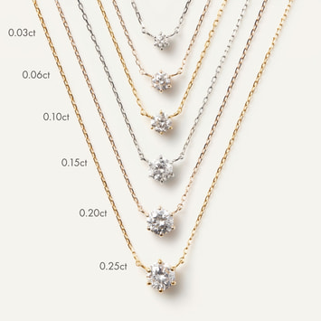 さりげなくアクセントにもなるイエローゴールドの華奢なチェーンは、1粒ダイヤを美しく胸元に浮かび上がらせ輝きをより一層引き立ててくれます。