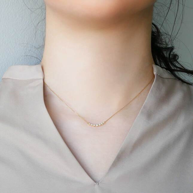ダイヤモンドで笑顔を思わせるカーブを描いたネックレス。