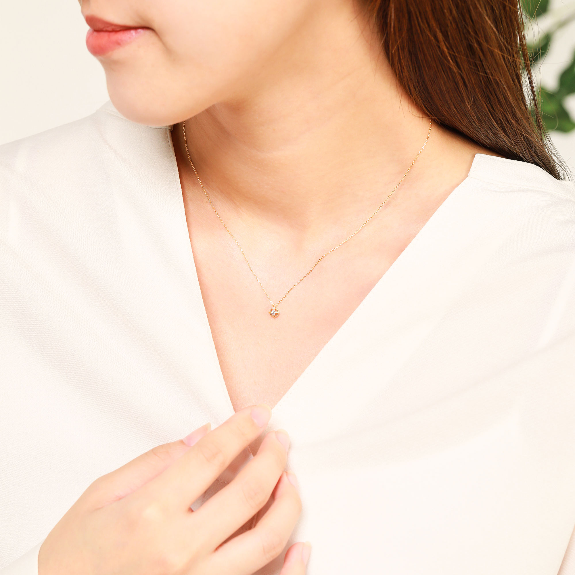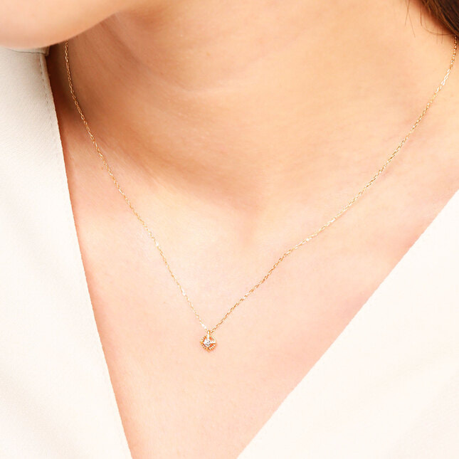 ベーシックになりすぎないデザインは1粒ネックレスとはまた違った魅力を感じられます。