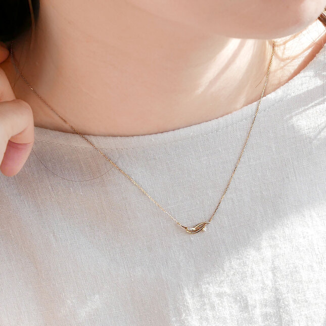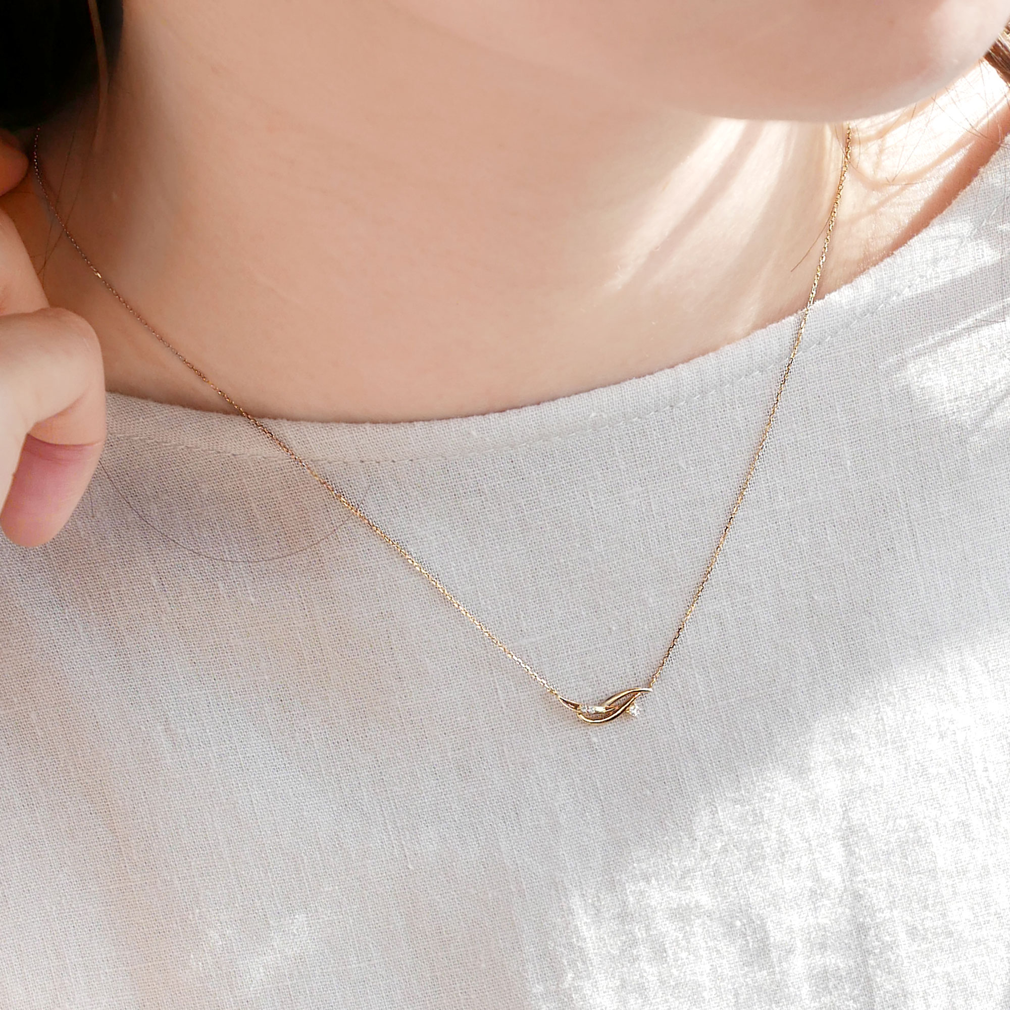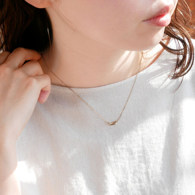 イエローゴールドの太陽のように温かみのある色と、フォルムが美しいネックレスは今の気分にぴったりです。