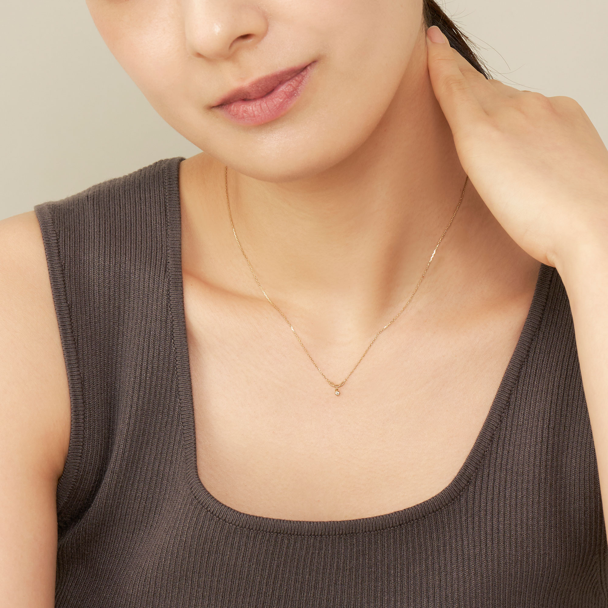プチサイズのトップがデコルテにさりげなく輝きを添えます。