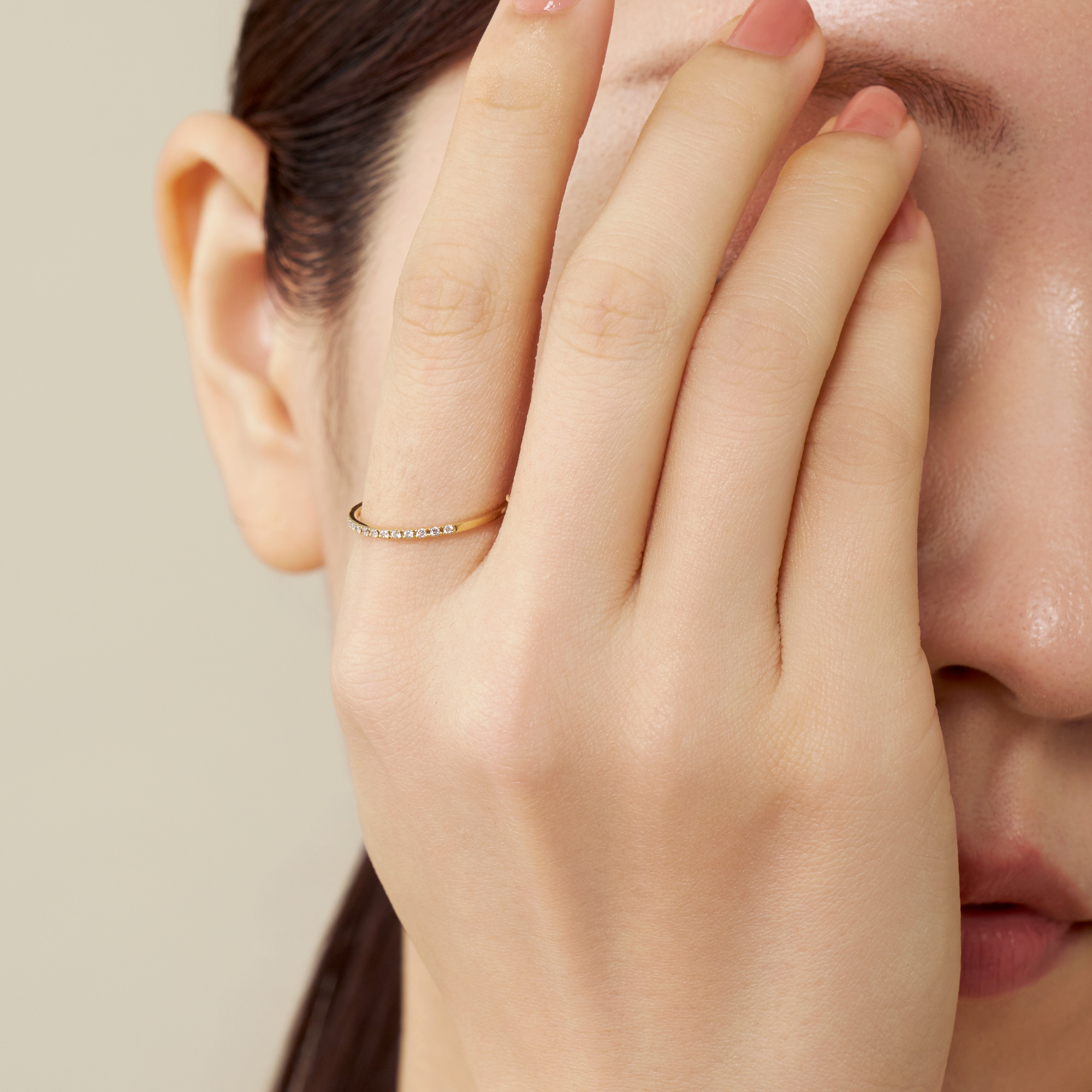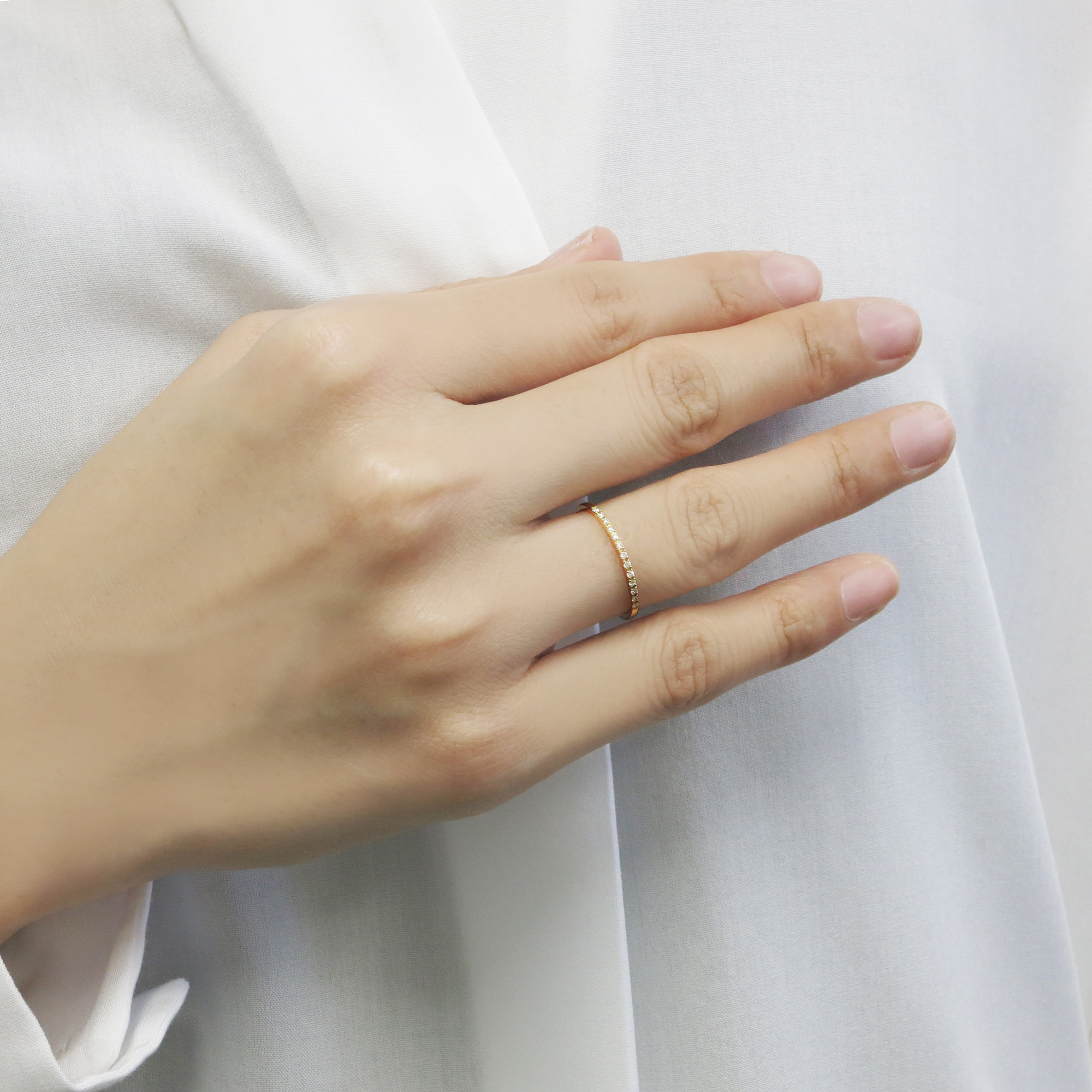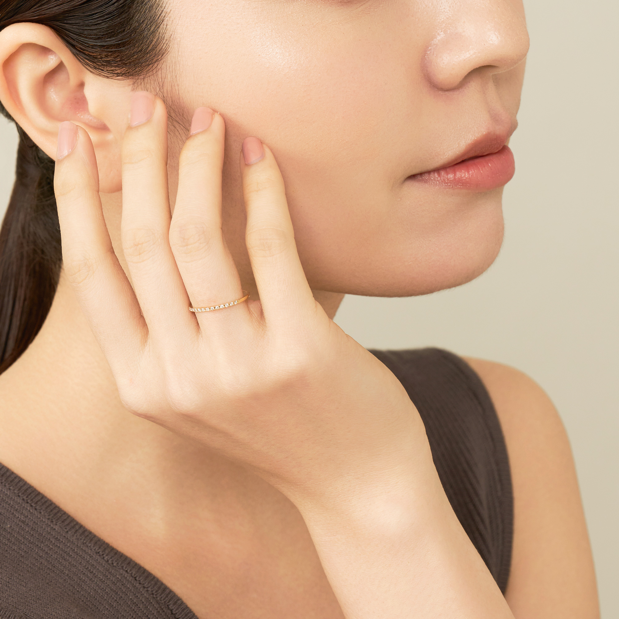 シンプルな一本使いはもちろん、お手持ちのリングと重ね着けしてボリューム感を出すコーディネートもおすすめ。