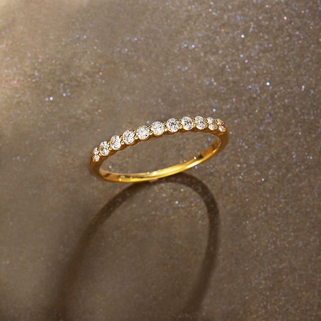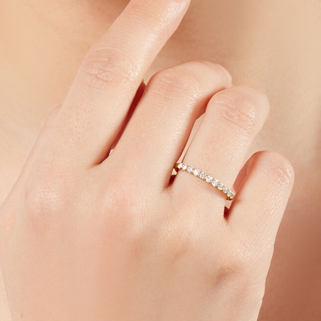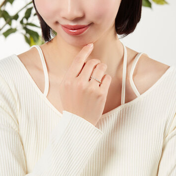 流行に左右されない定番スタイルとして、万能なコーディネート力をもつハーフエタニティリング。