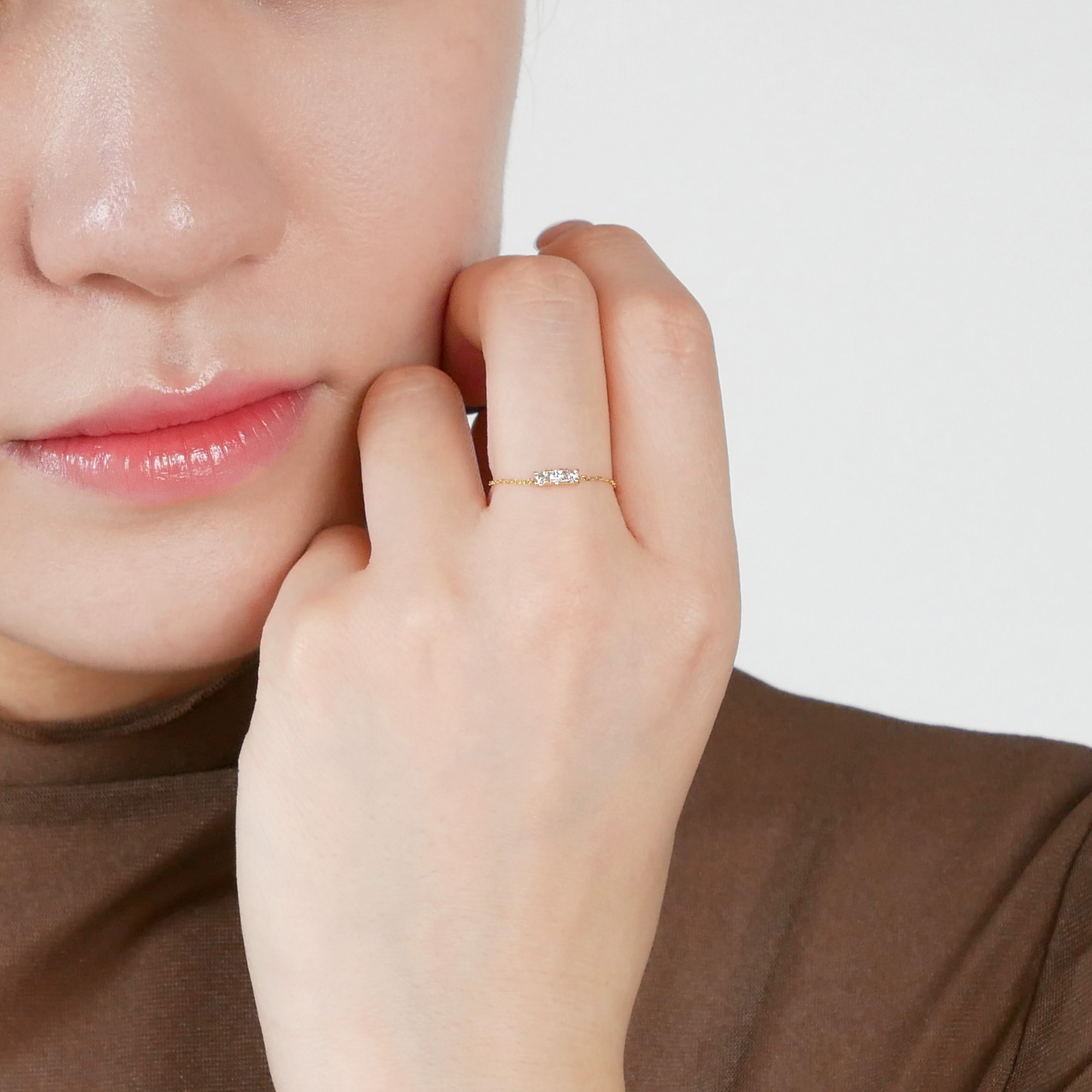きらりと光る3石のダイヤモンドが、手元に繊細な輝きをプラスします。