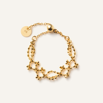 レース模様が手元に浮かび上がるようなチェーンリング。