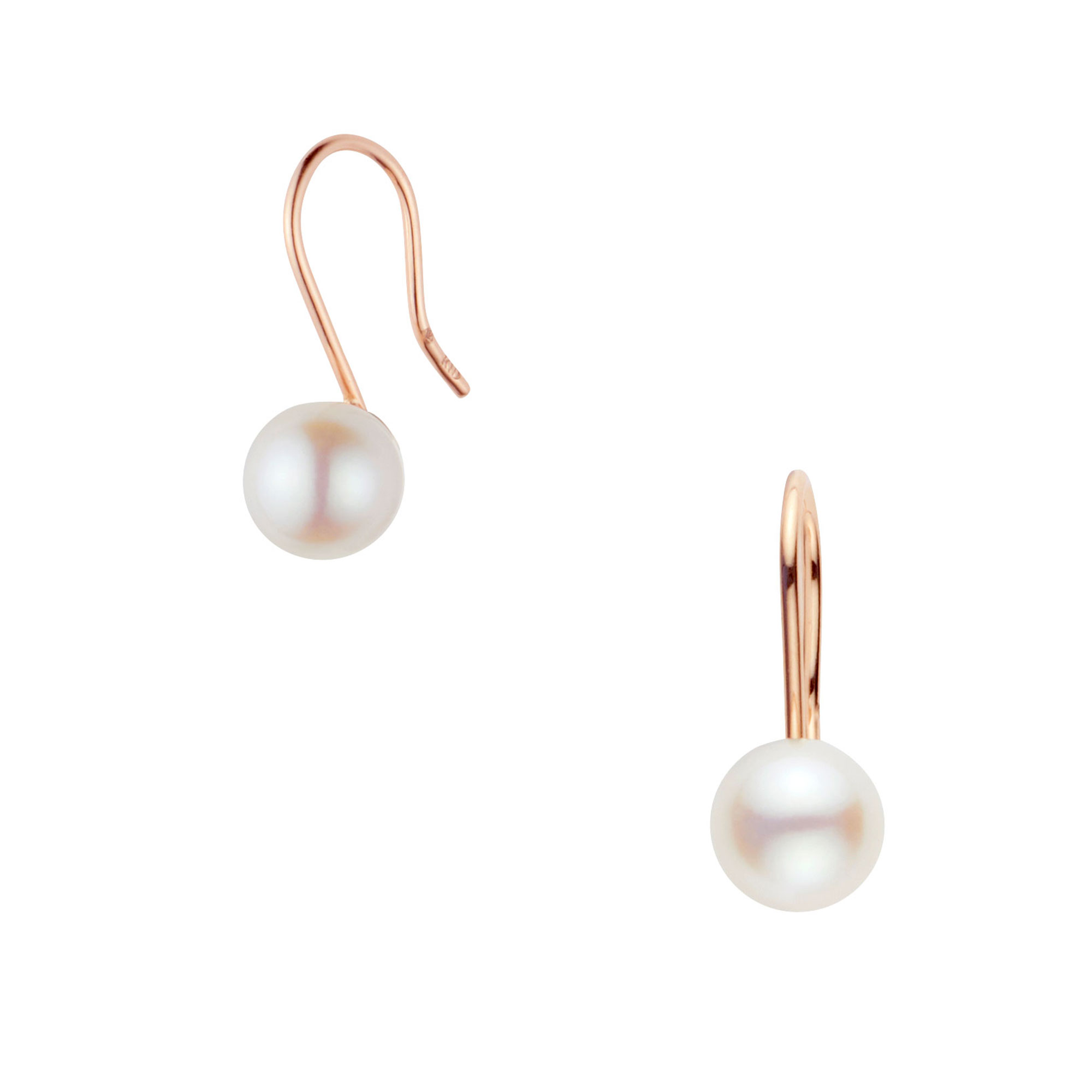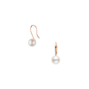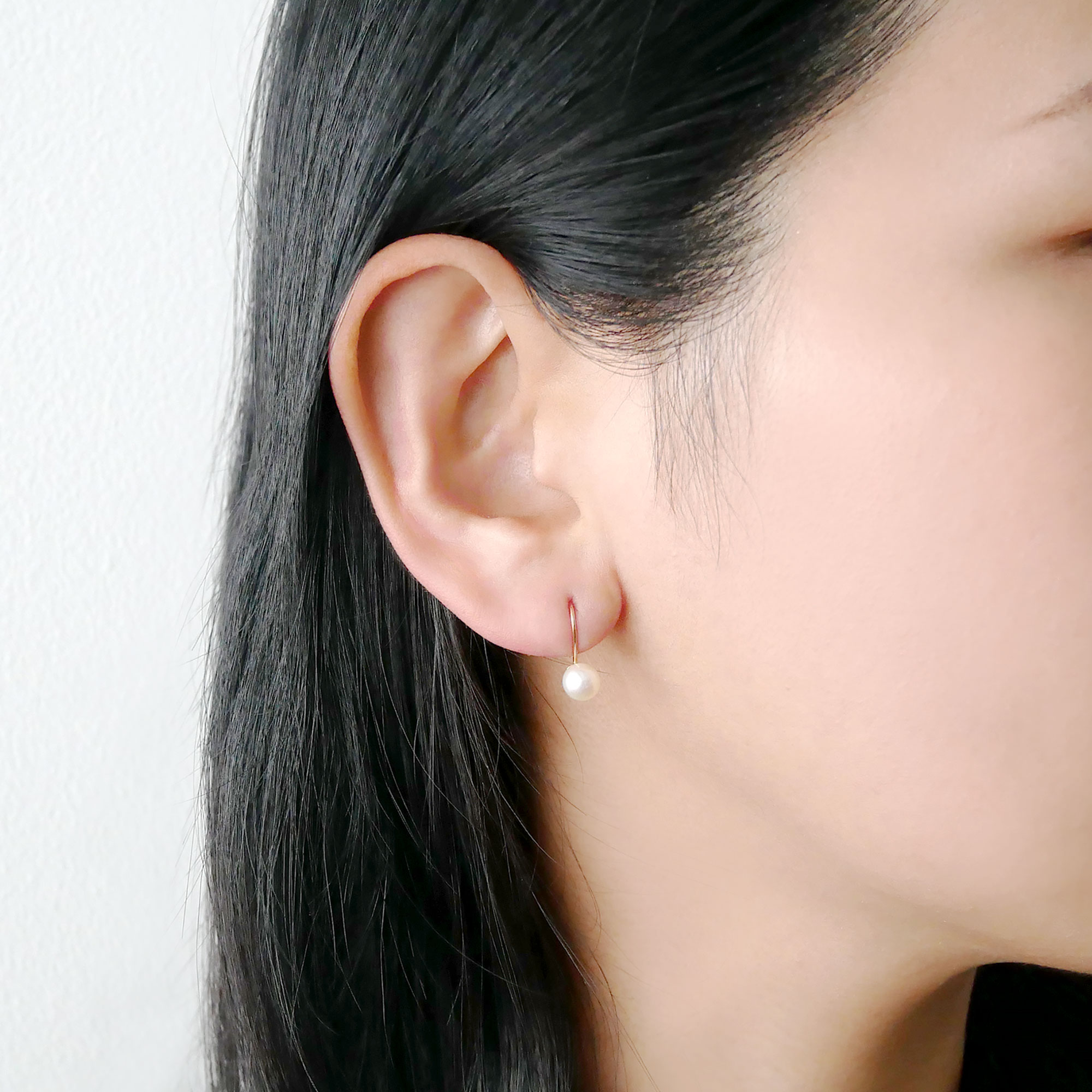 フックタイプで、優しいカラーの淡水パールが耳元にさがるデザインです。
