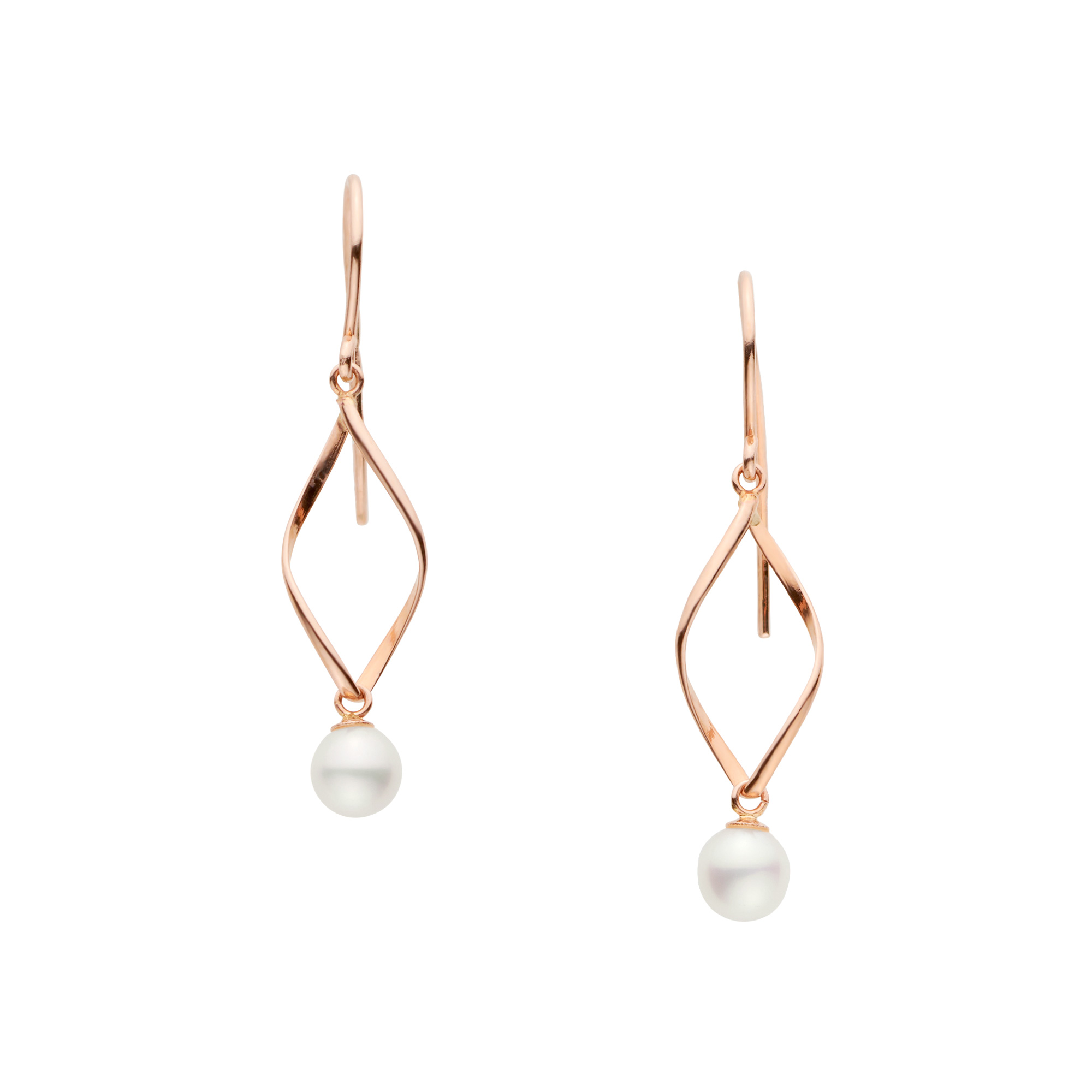 ひねりを加えたゴールドのモチーフから、淡水パールが下がって揺れる女性らしいピアス。