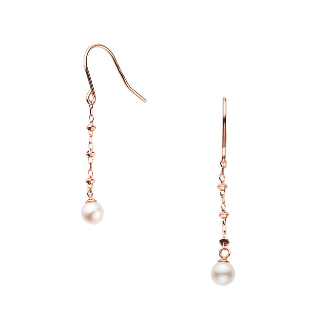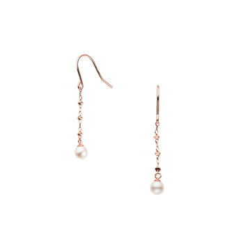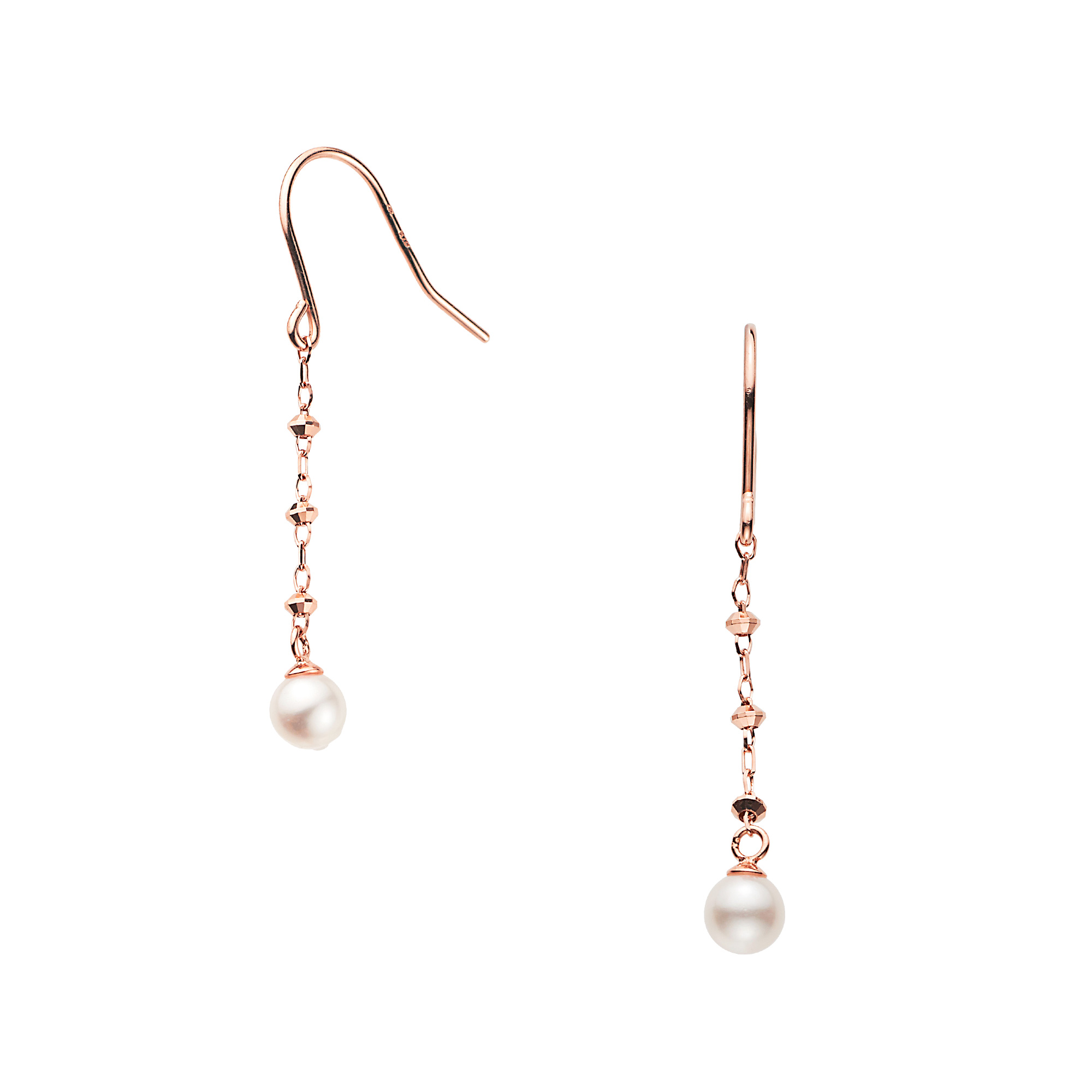 チェーンにあしらったピンクゴールドのカットパーツがパールのやわらかな輝きを引き立てながら、さりげなくきらめきをプラス。