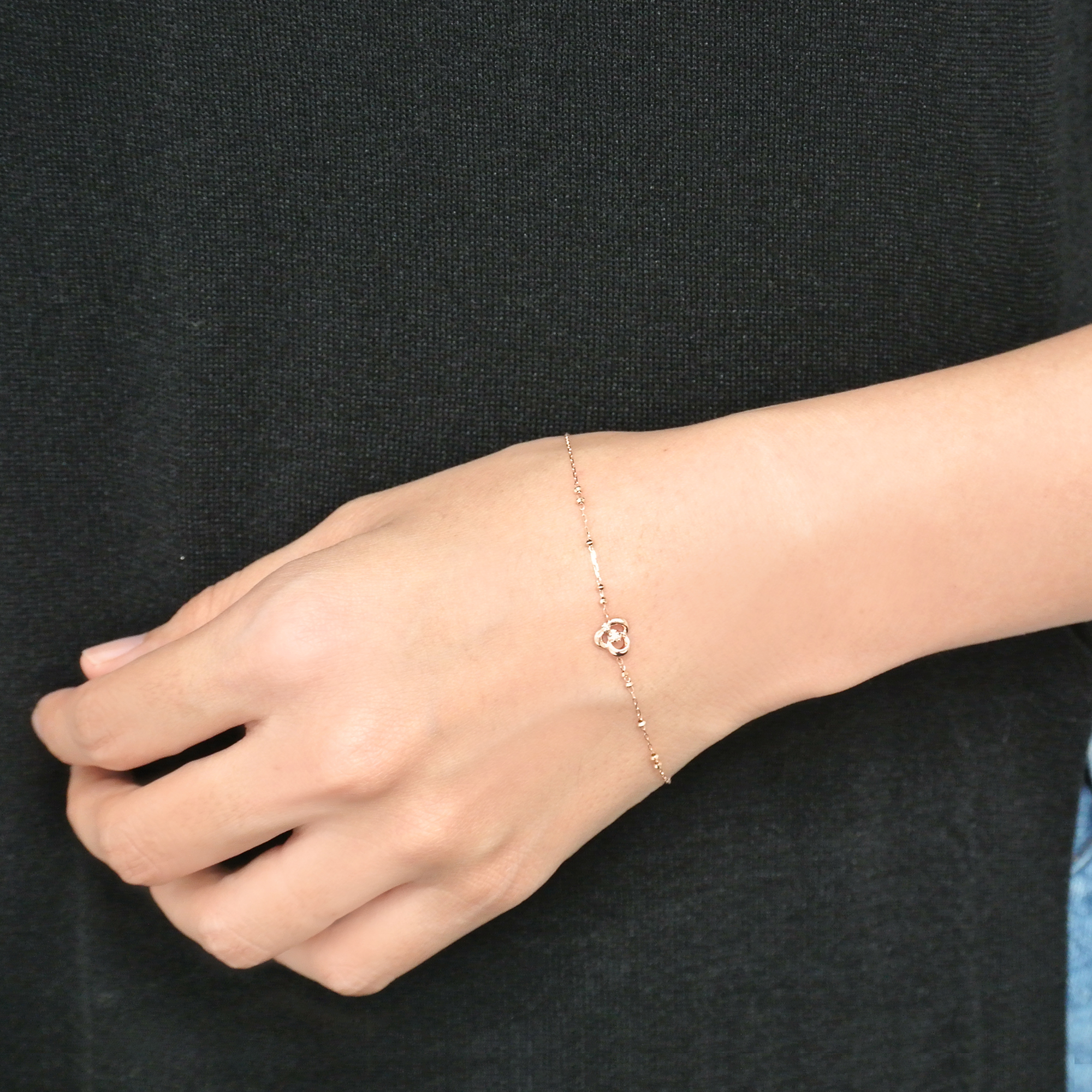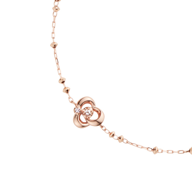 ピンクゴールドの艶めくフラワーモチーフブレスレット。