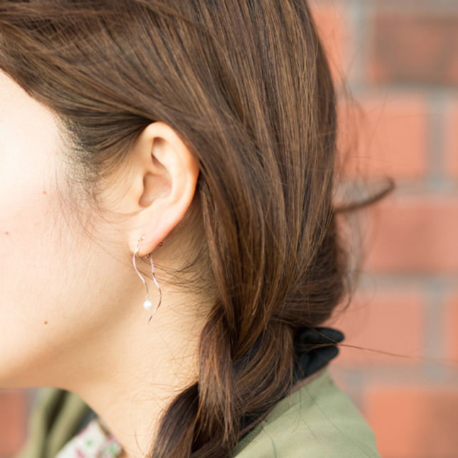 耳の後ろ側にもゆるくひねった金線が揺れるデザインで、軽やかさをお楽しみいただけます。