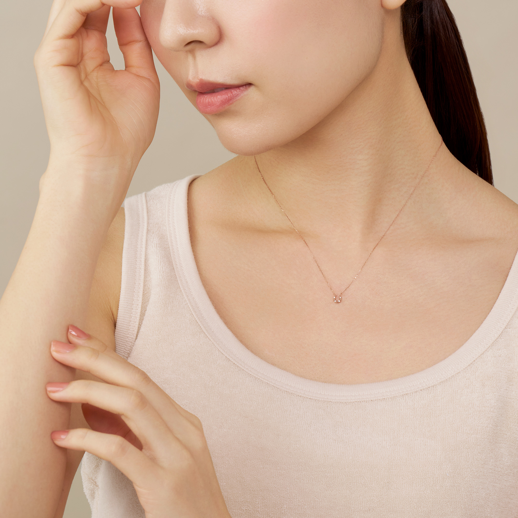 艶やかなピンクゴールドの華奢なチェーンとダイヤモンド のきらめきが、胸元を上品に見せます。 程よいボリューム感で、デイリー使いにもオススメです。