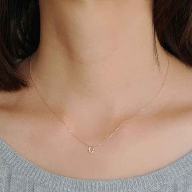 4石のダイヤモンドをあしらった馬蹄のモチーフネックレス。