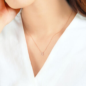 ピンクゴールドとダイヤモンドのきらめきで描いたU字のシルエットが、デコルテを上品に飾ります。